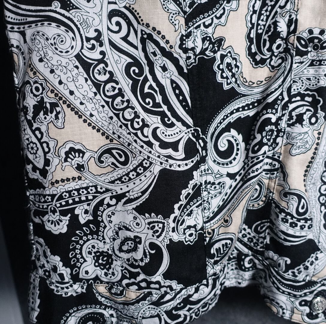 ペイズリー柄を全面にあしらったモードなデザイン。