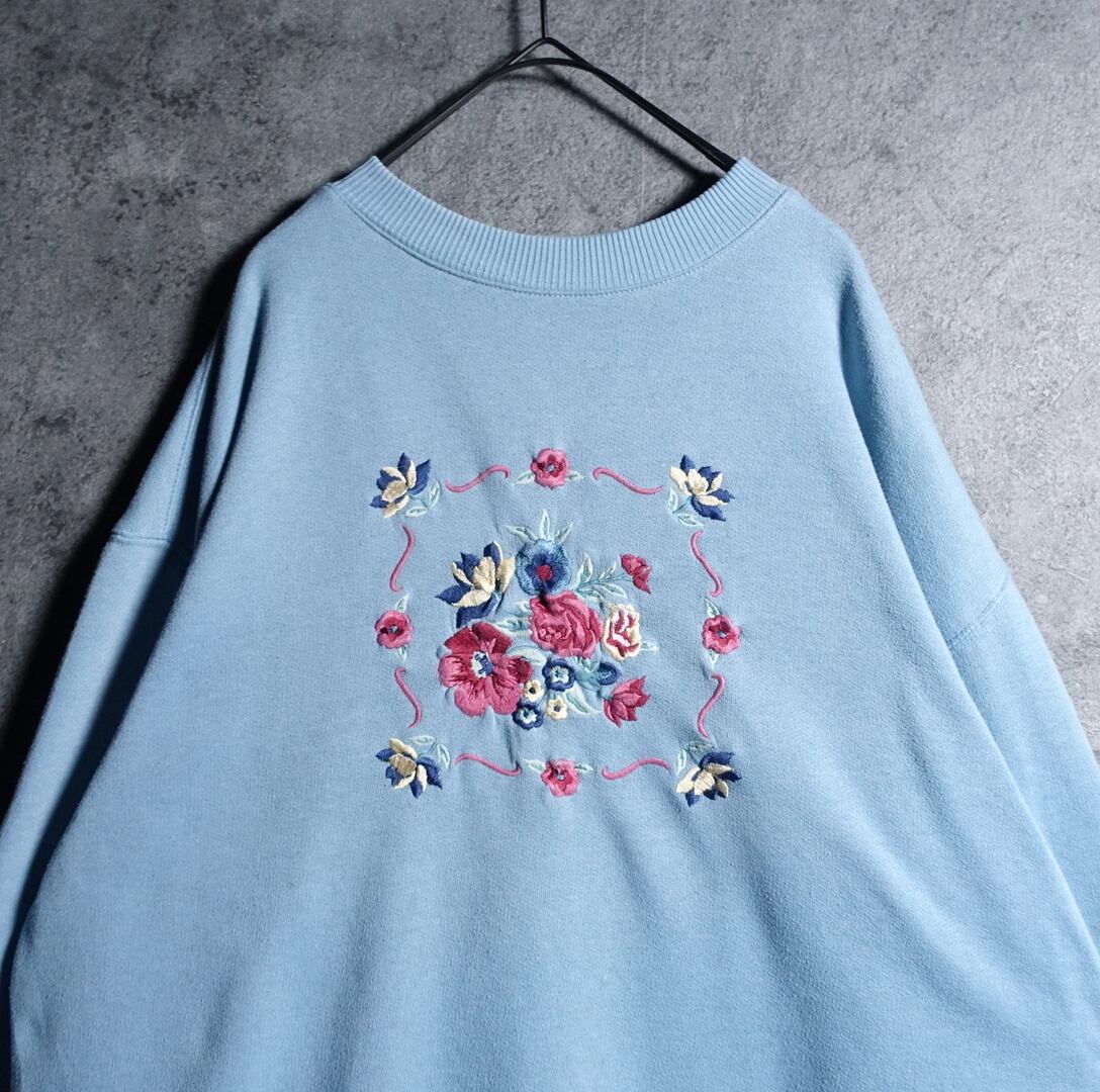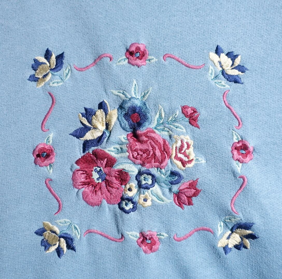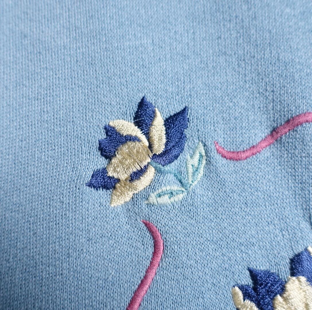 Light blue flower motif embroidery design sweatshirt