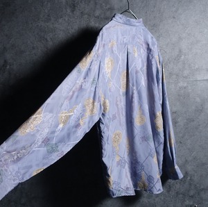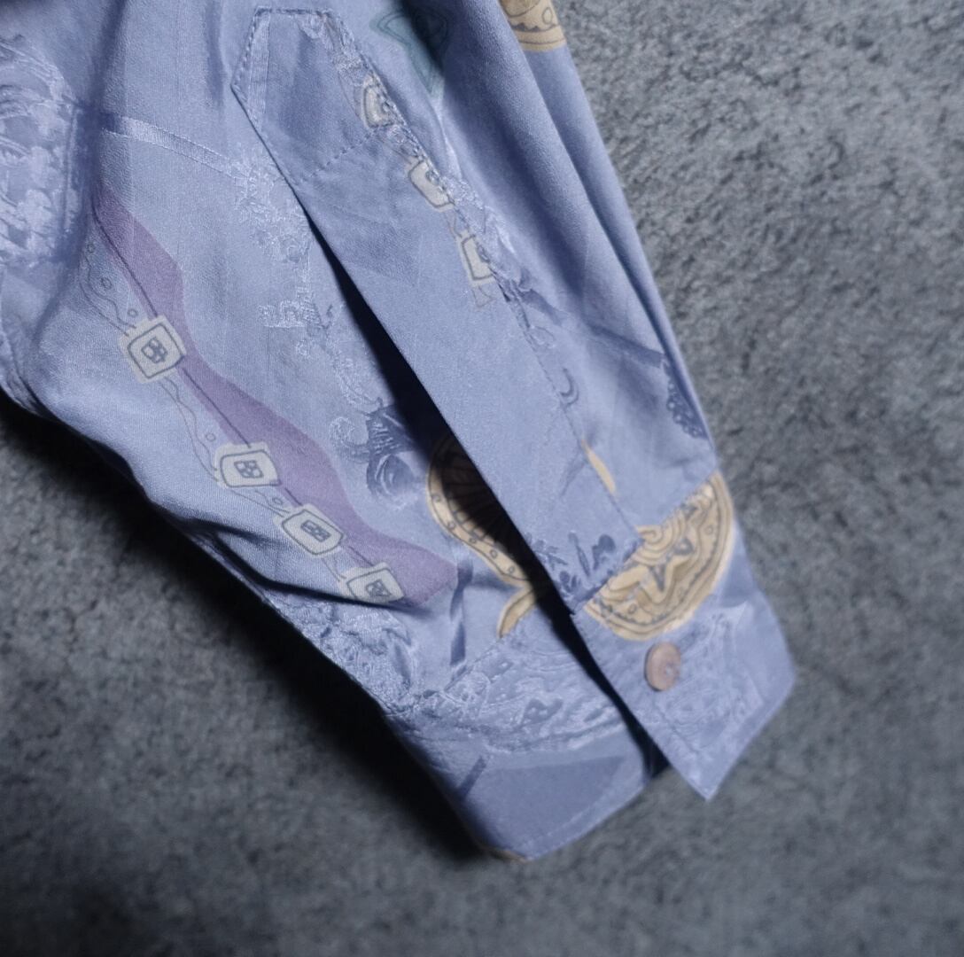 ブルーグレーのスペシャルなモチーフシャドーデザインシルクシャツが入荷です。