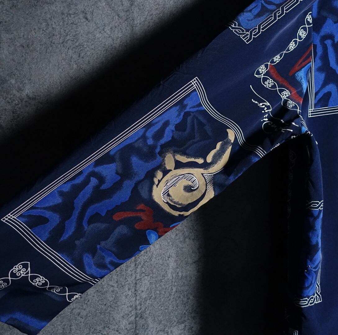 素材はポリエステル100%で美しい光沢感があり、柔らかくドレープ性のある生地感となっています。