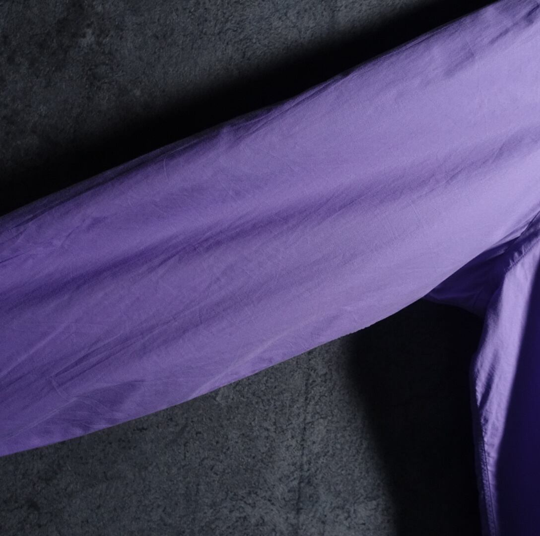 絶妙な珍しい色味のラベンダーカラーをベースに同色の刺繍ロゴが施されたデザイン。