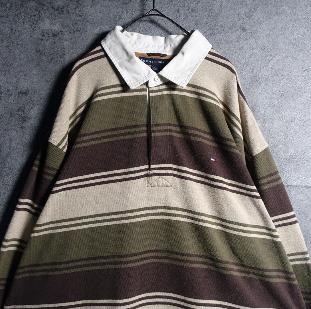 00s “ TOMMY HILFIGER” Multicolor Border Rugby Shirt