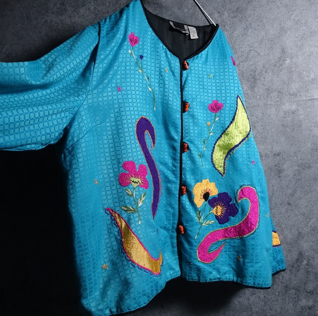 様々な花モチーフやペイズリーにようなモチーフを刺繍で全面に施した凝ったスペシャルなデザイン。