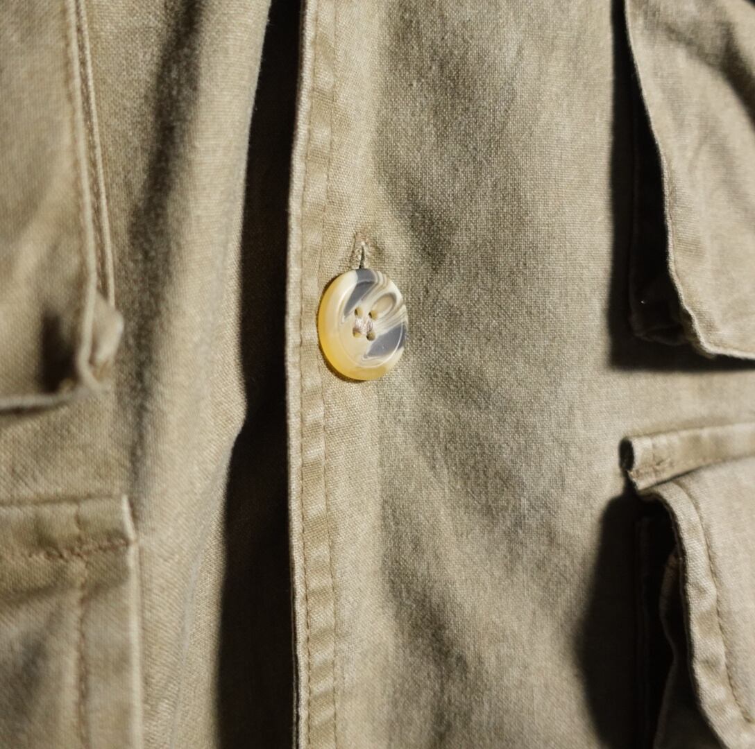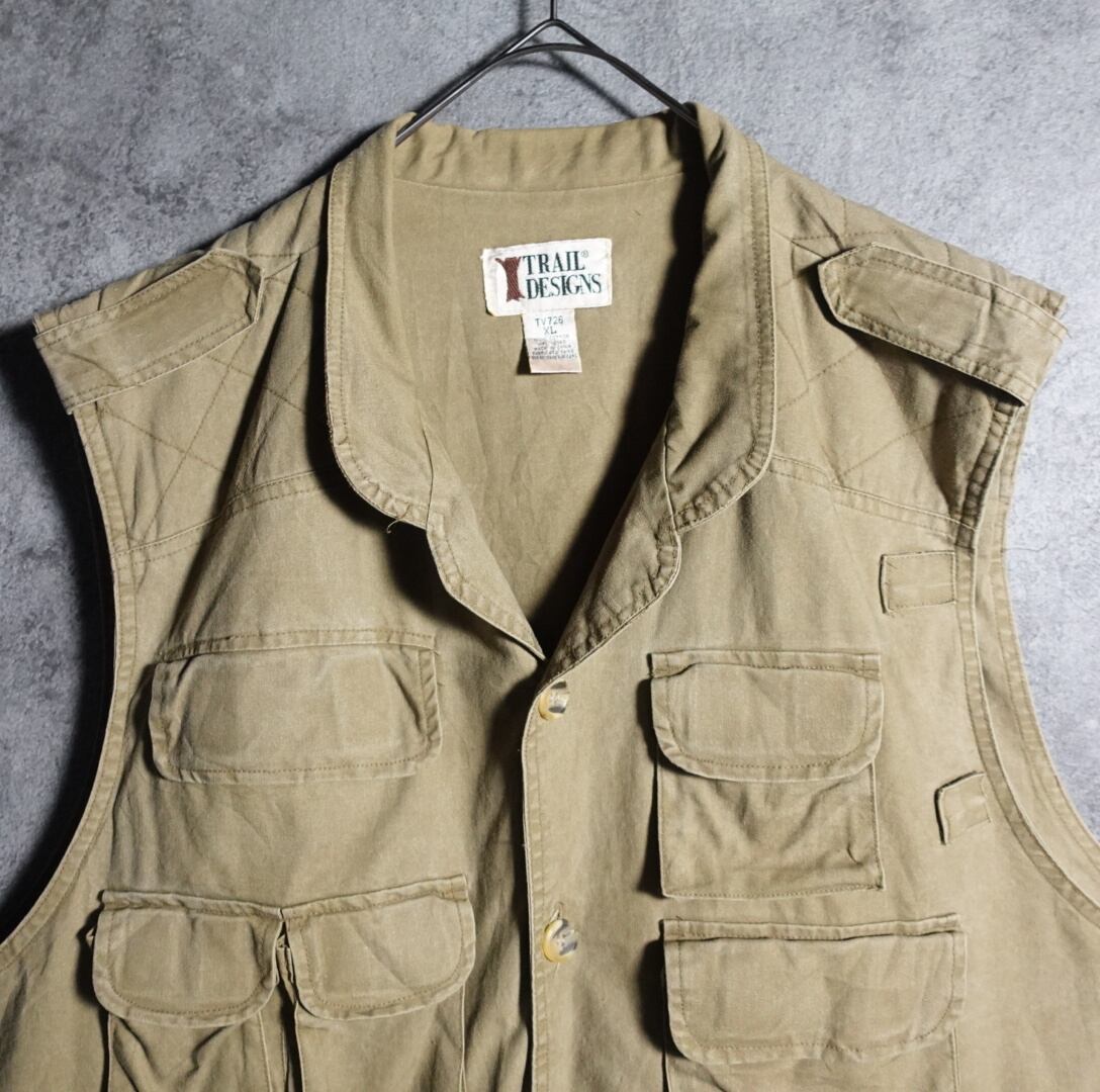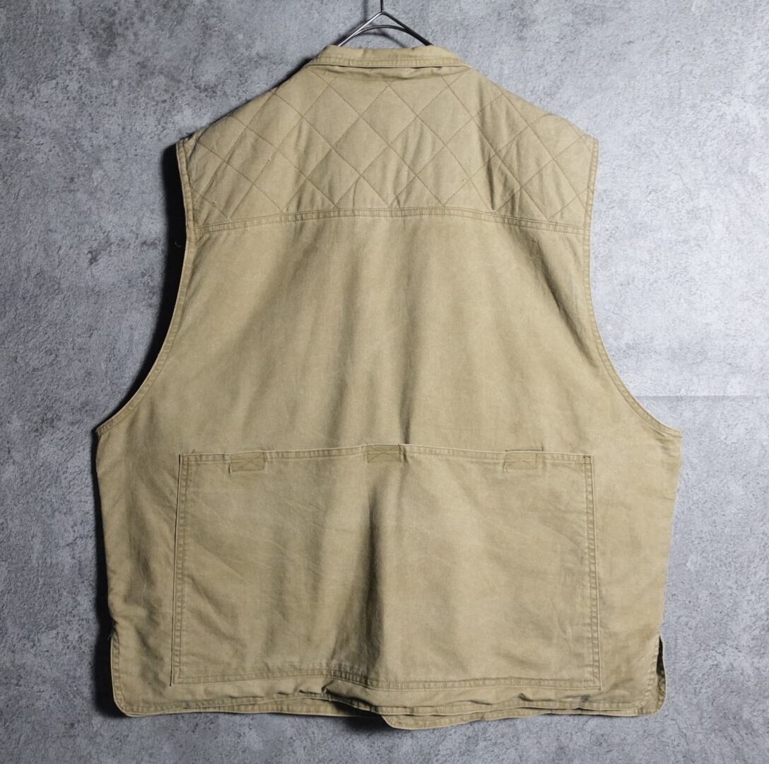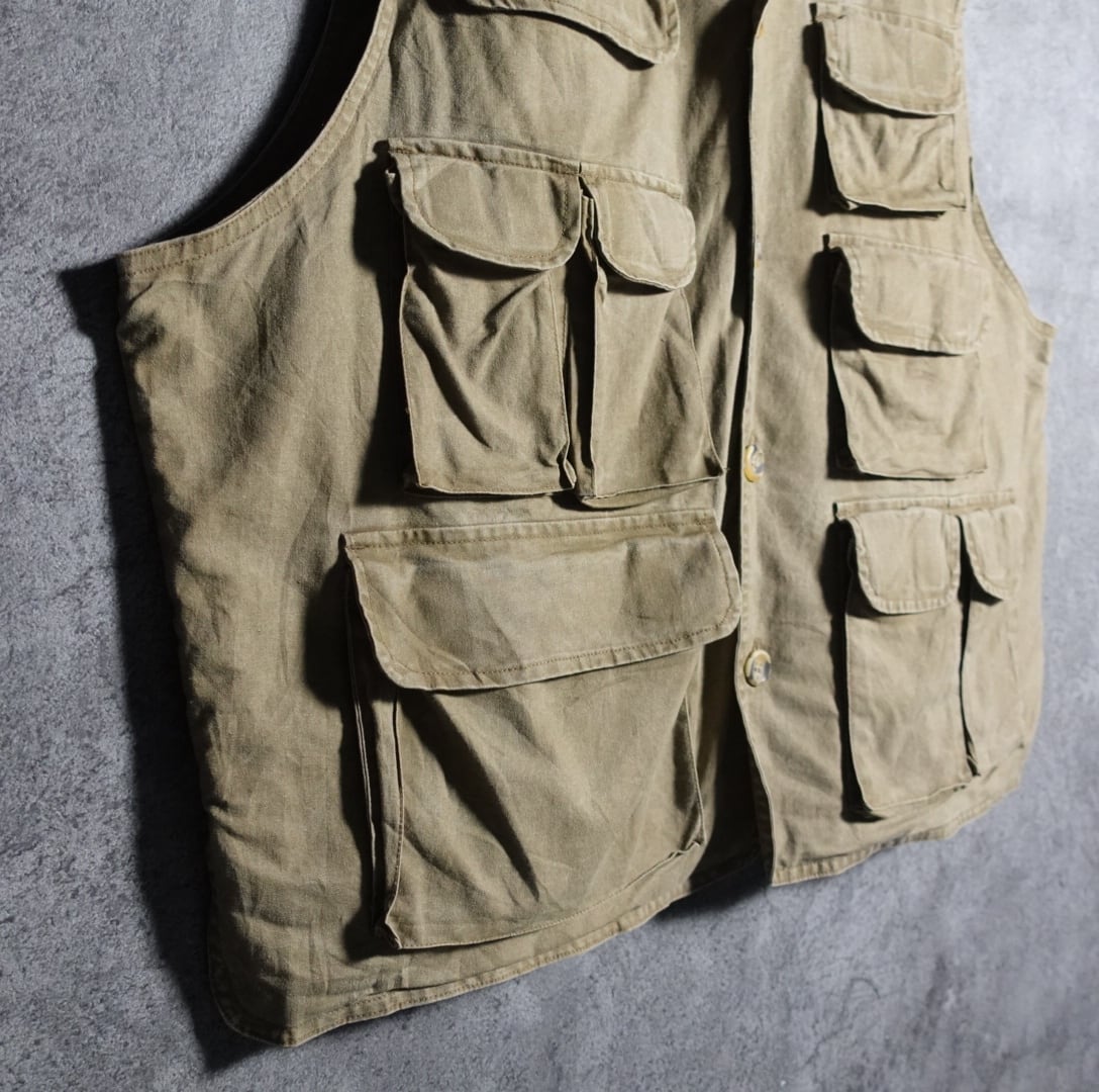カーキをベースにハンティングベスト特有の多数のポケットとショルダーにはガンパッチが施された凝ったデザイン。
