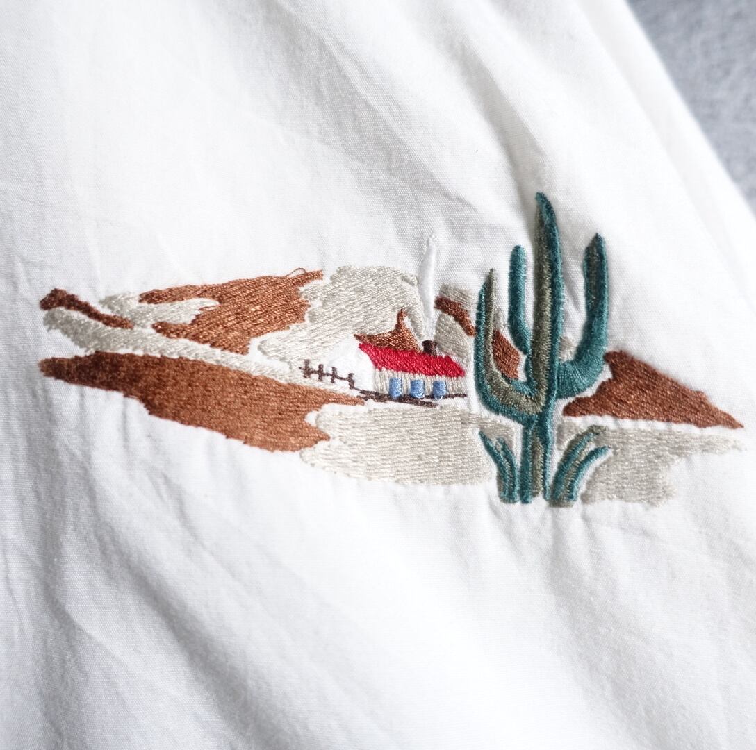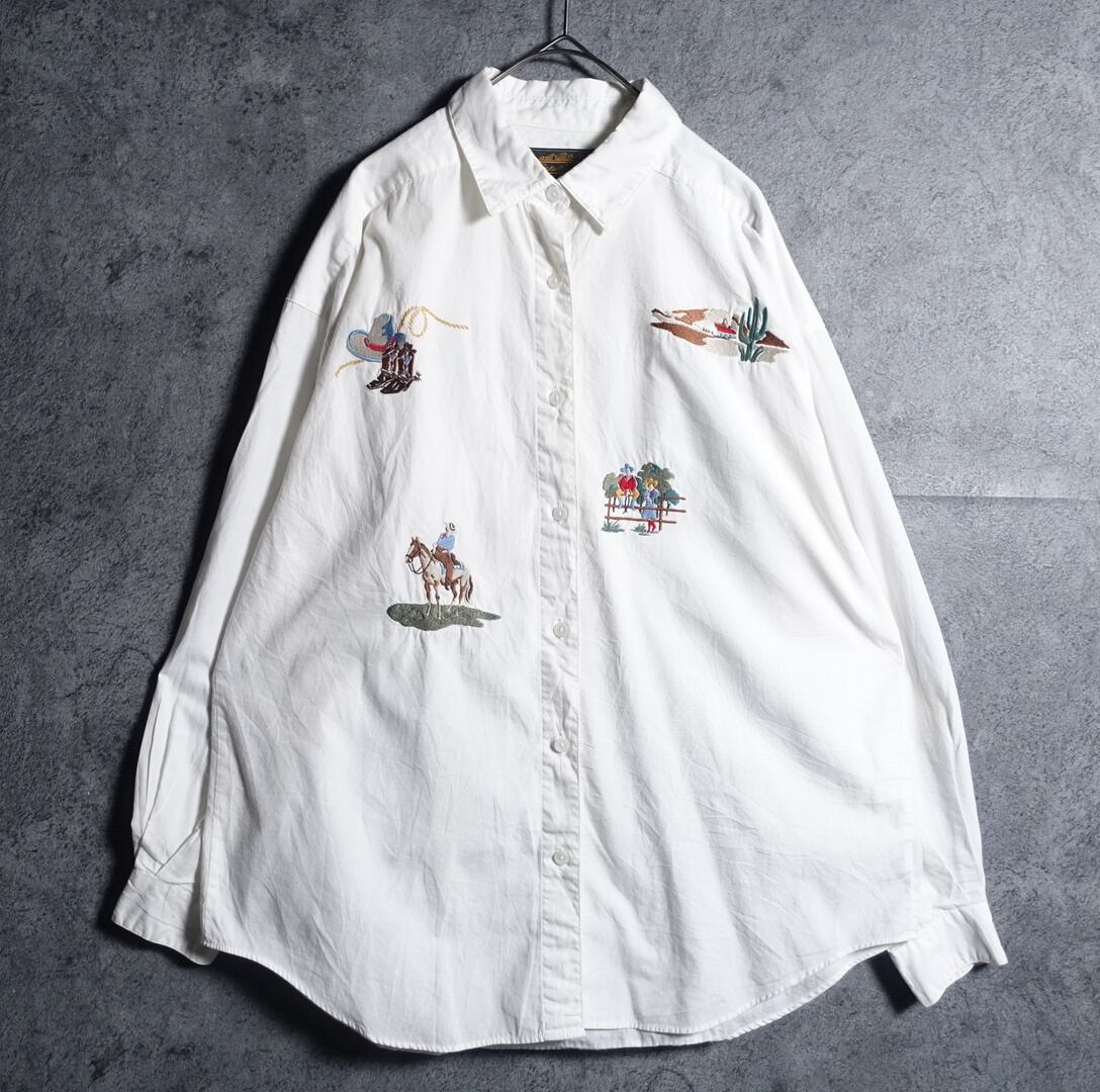 90s “Eddie Bauer” White Cowboy Motif Embroidered Design Shirt