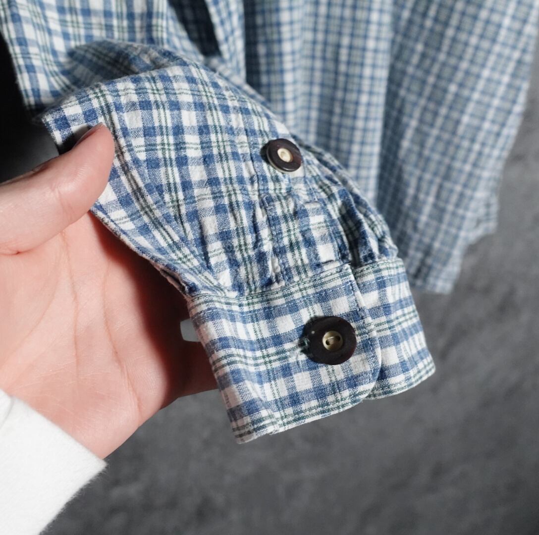 EURO Blue Check Metal Button Design Tyrolean Shirt