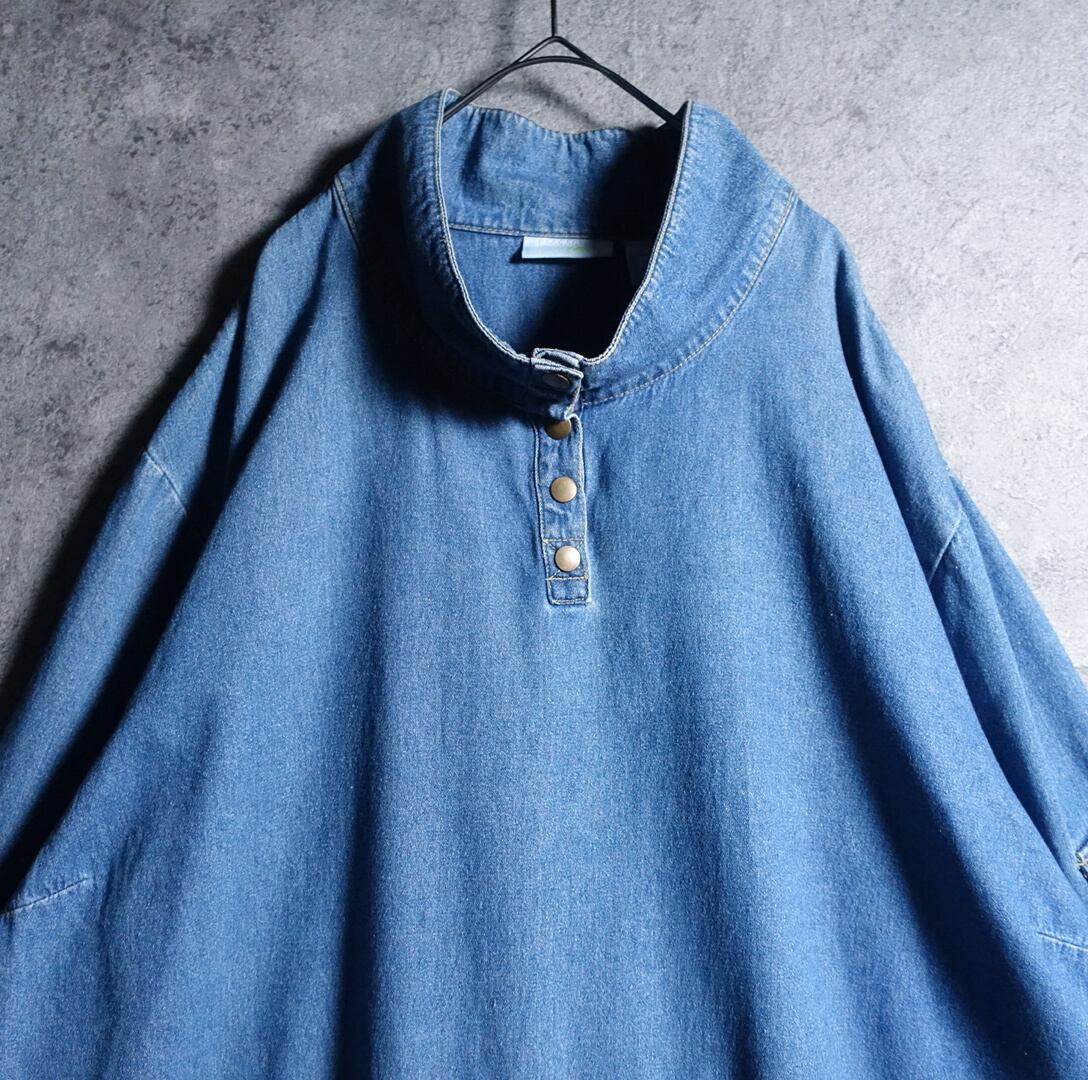 ハーフボタンデザインのデニムプルオーバーシャツが入荷です。