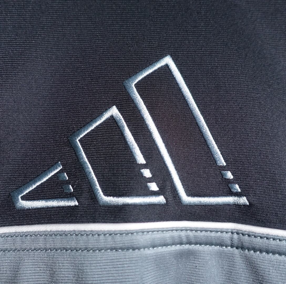 両肩に象徴的な3本のライン、胸元、背面にはパフォーマンスの刺繍ロゴが施されたデザイン。