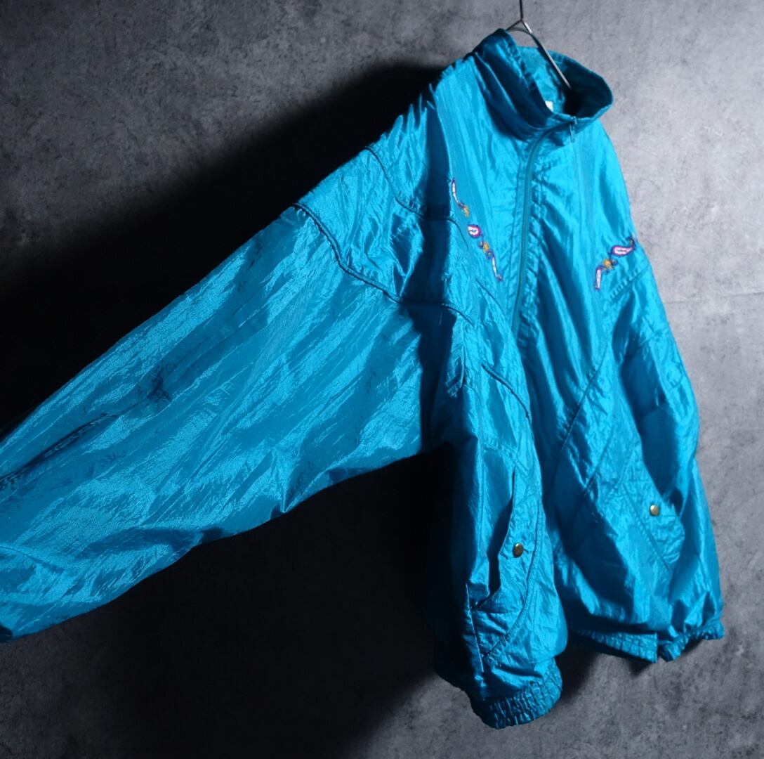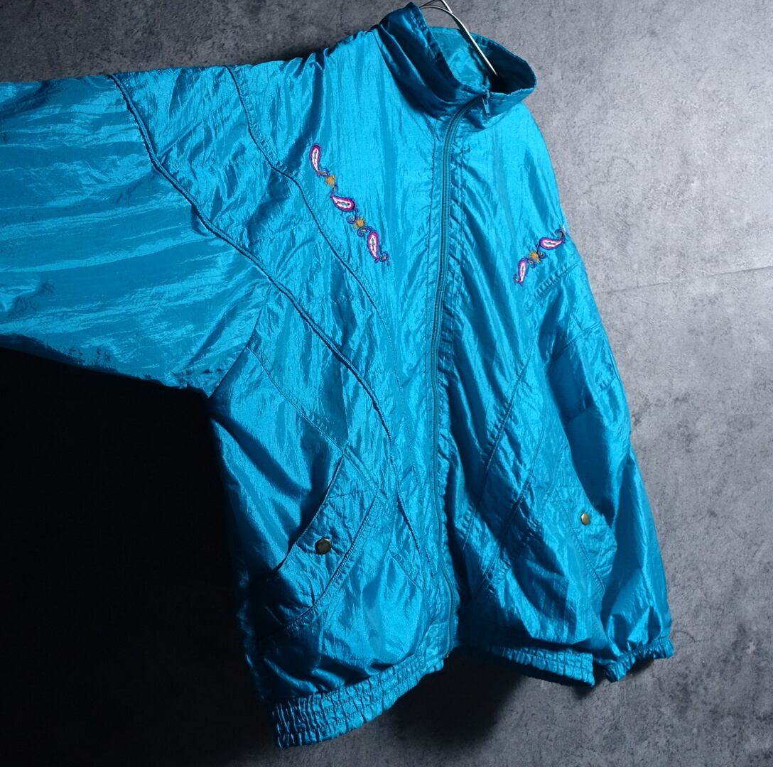 Turquoise Blue Paisley Motif Design Nylon Jacket