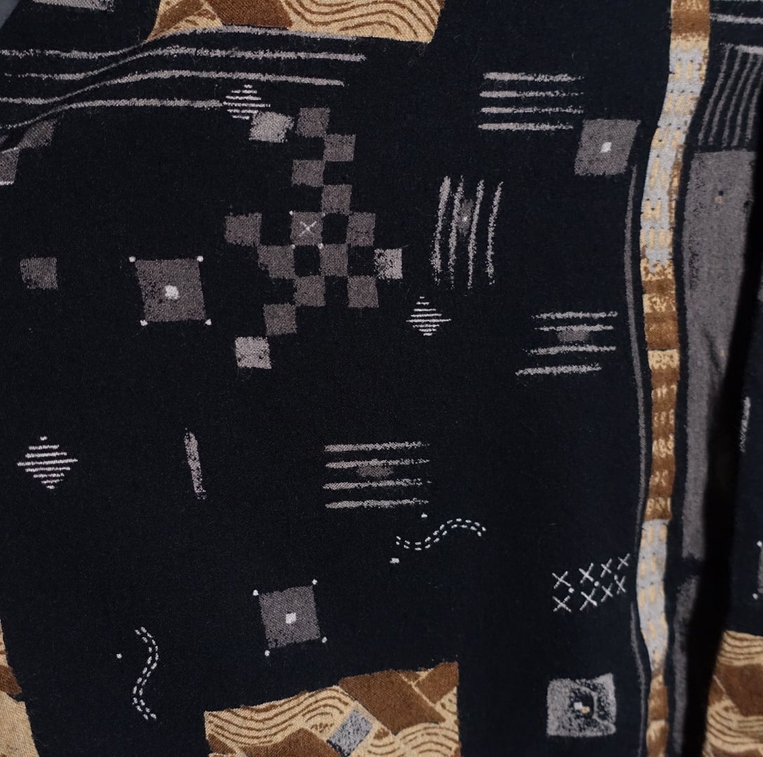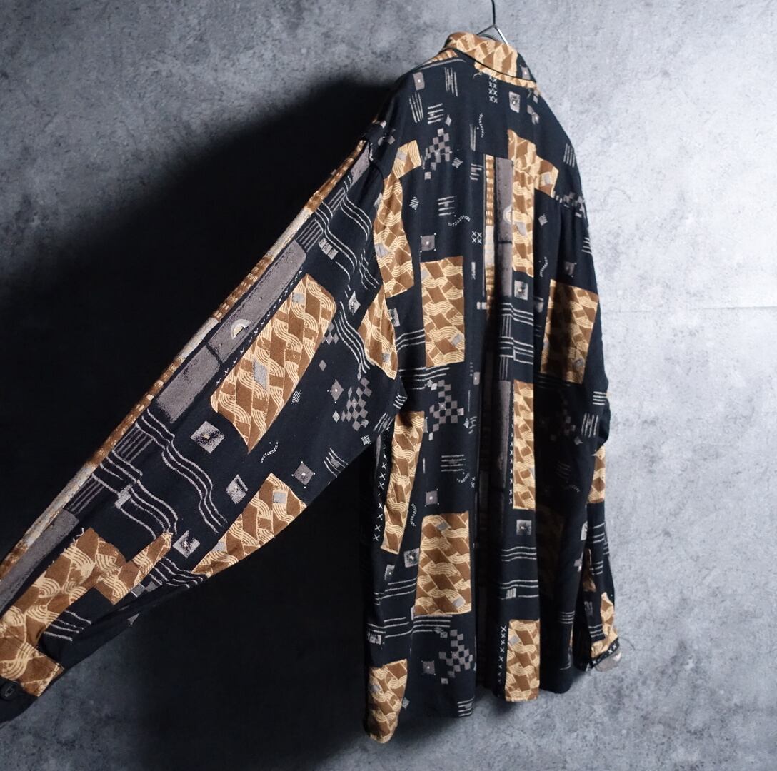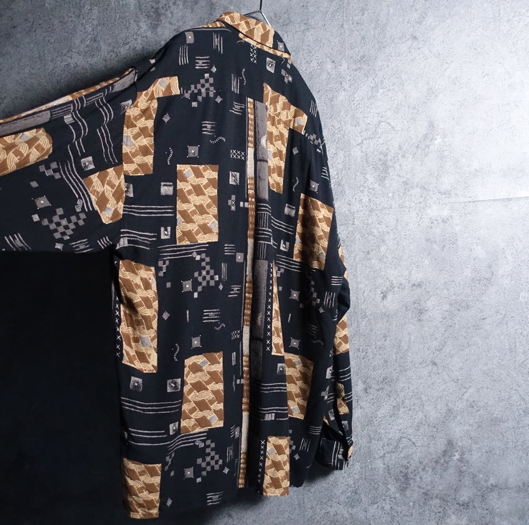 ブラックの幾何学模様デザインシャツが入荷です。