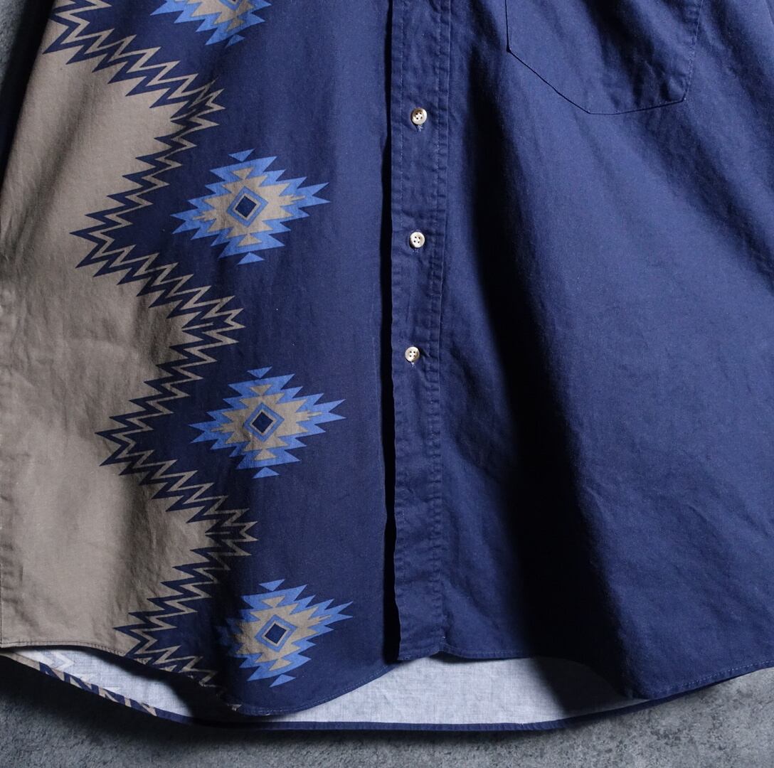 アメリカ製のブルー&カーキのネイティブアシンメトリーデザインシャツが入荷です。