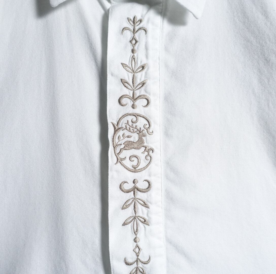 ユーロのホワイトディアーモチーフ刺繍デザインチロリアンシャツが入荷です。