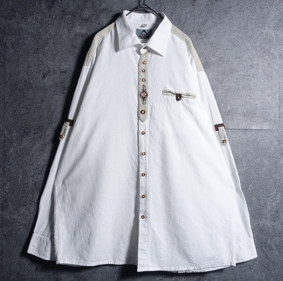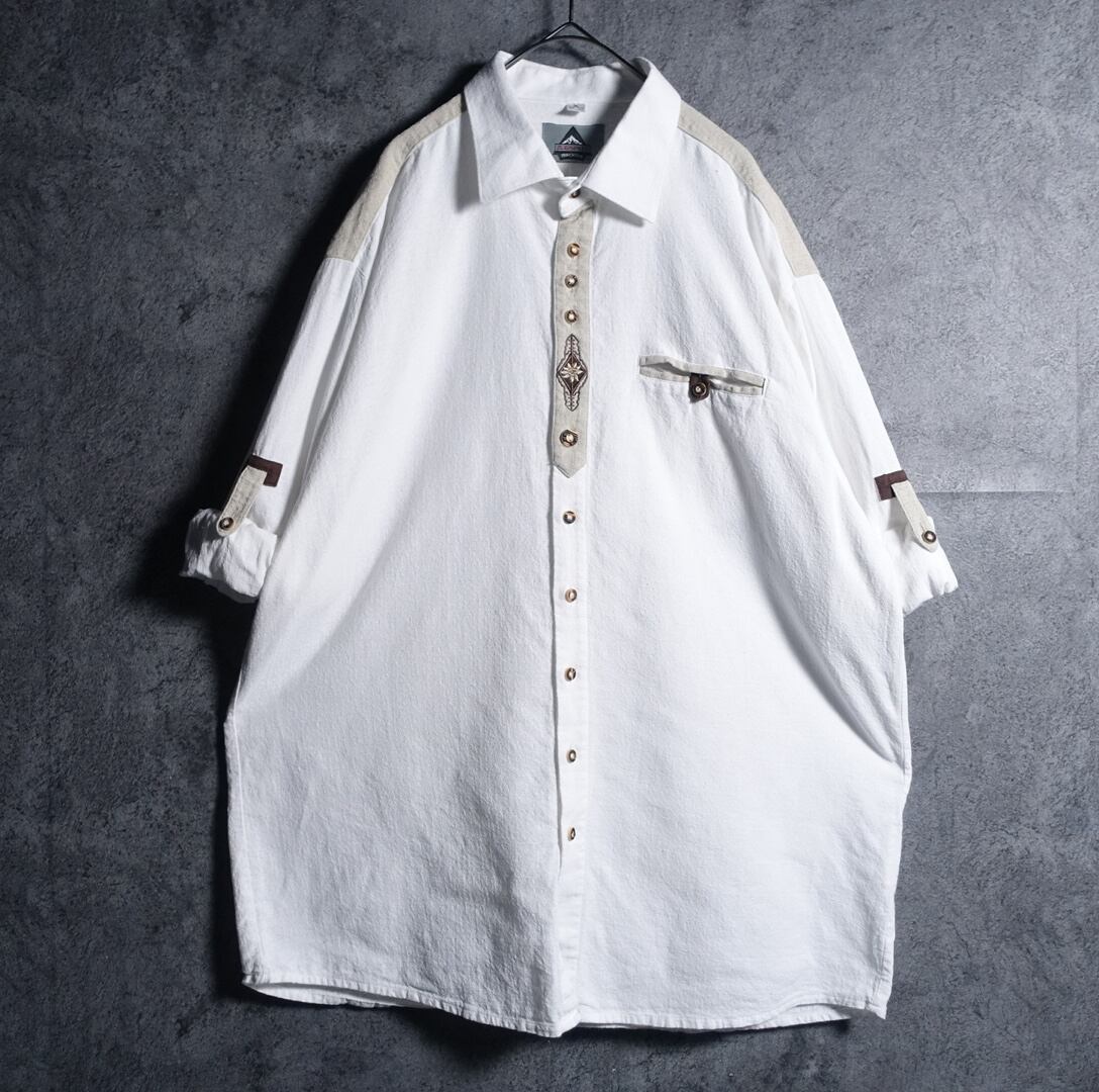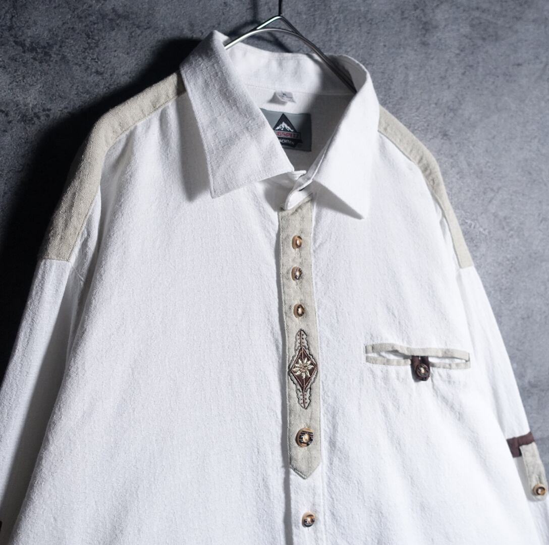 EURO White Flower Motif 2way Design Tyrolean Shirt