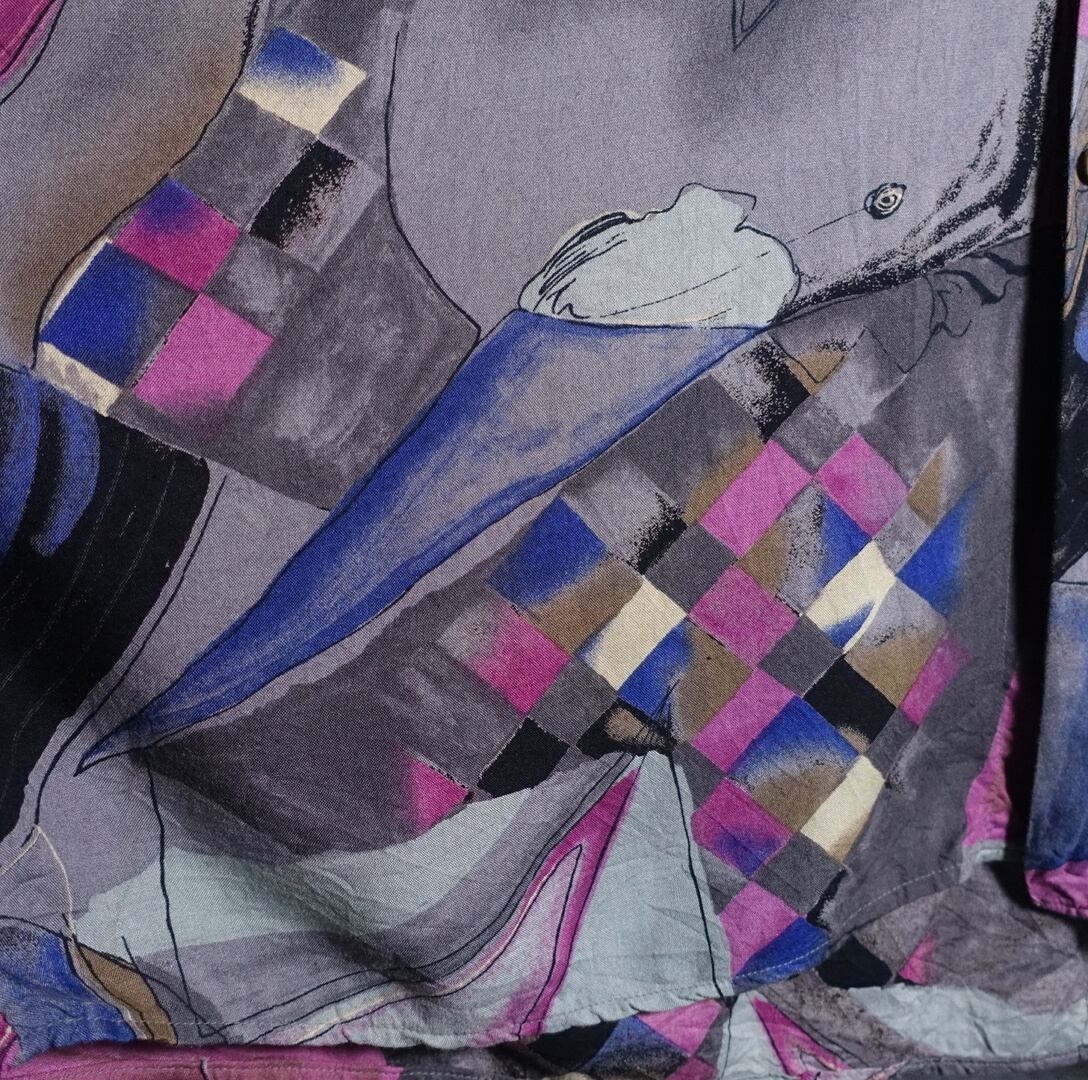 素材は恐らくビスコース100%で美しい光沢感があり、柔らかくドレープ性のある生地感となっています。