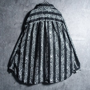 Monotone Botanical Pattern & Abstract Shadow Stripe Design 2way Shirt