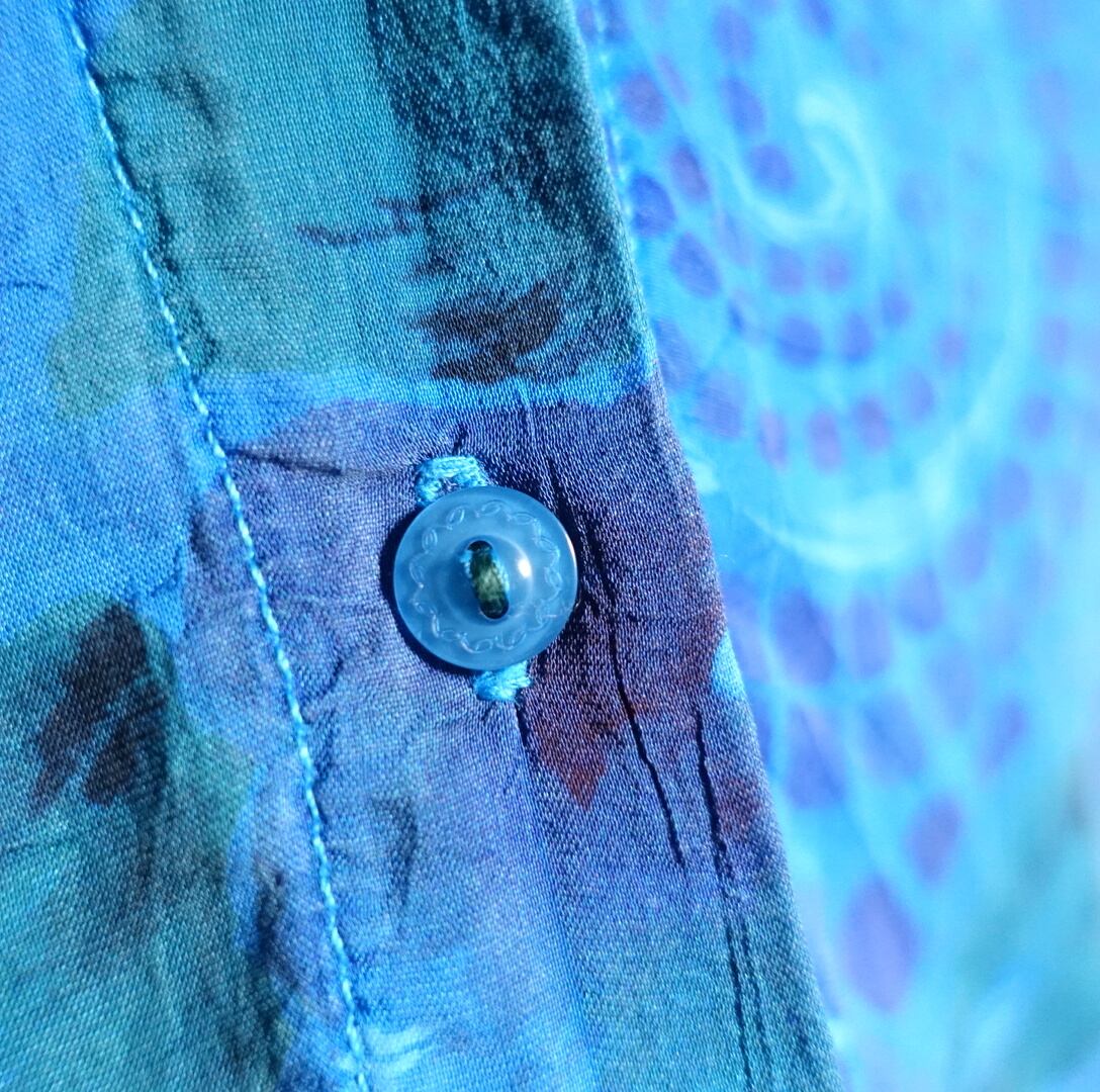 ブルーをベースに薔薇と幾何学模様を全面にあしらった洒落たデザイン。