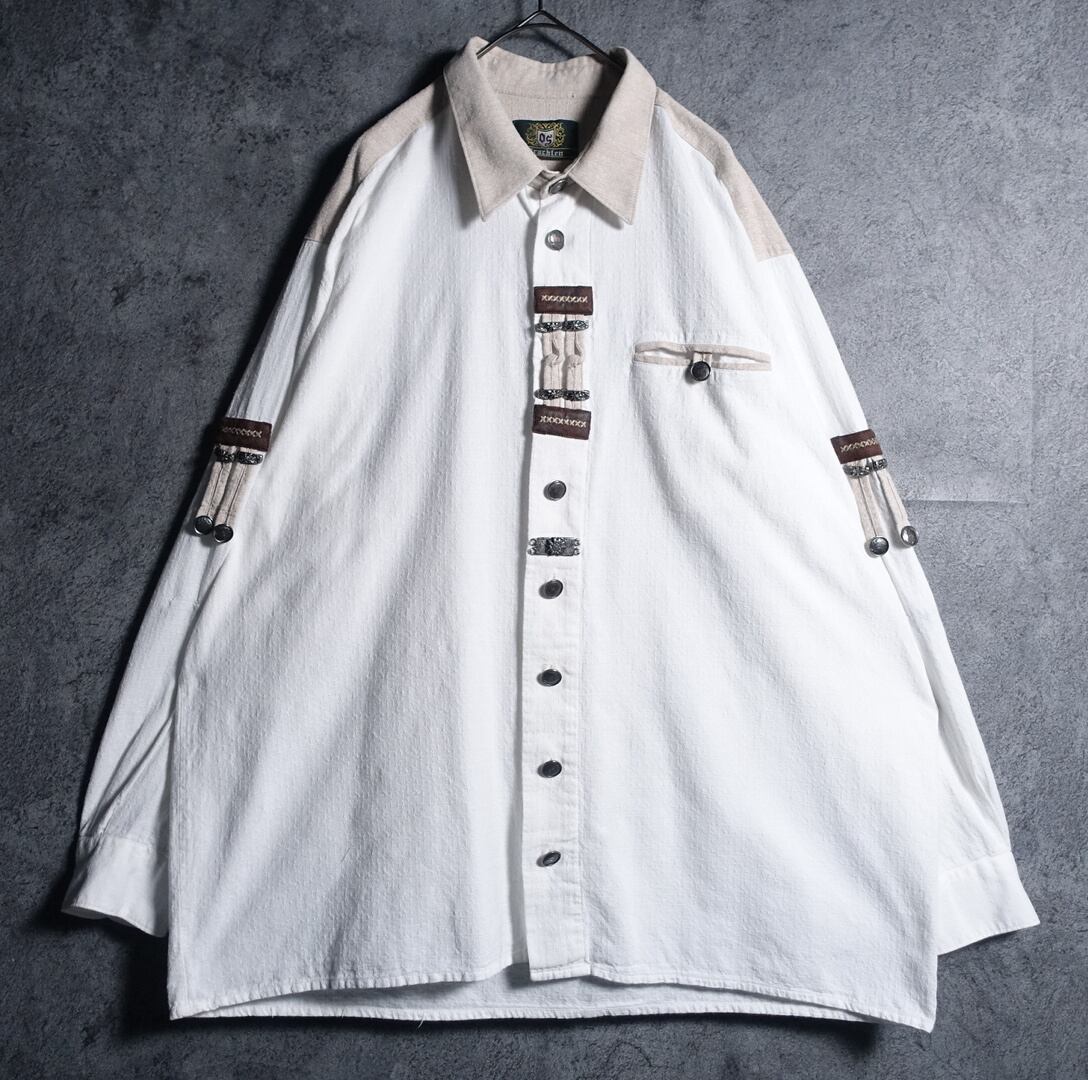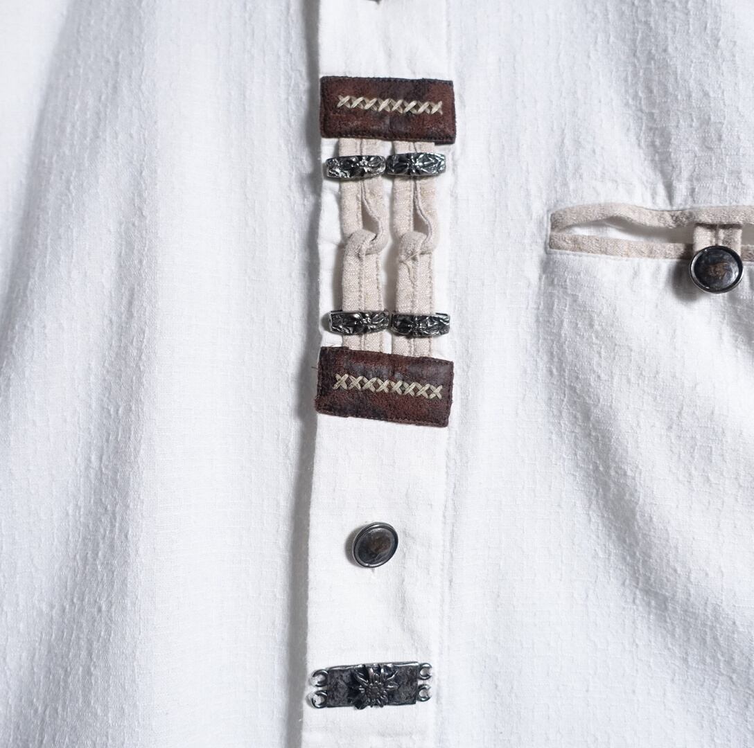 EURO White Metal & Leather Design Tyrolean Shirt