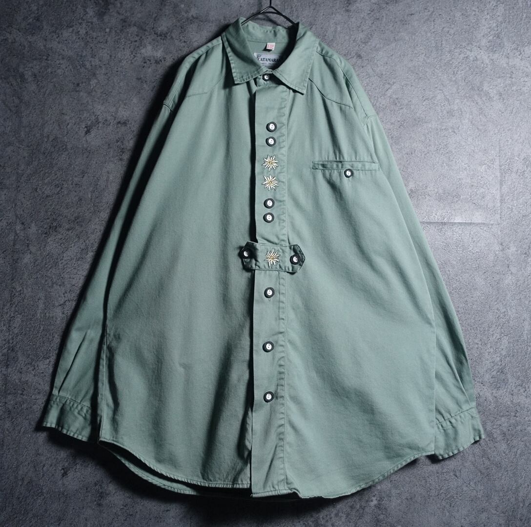 チロリアンシャツでは比較的珍しいグリーンカラーリング。
