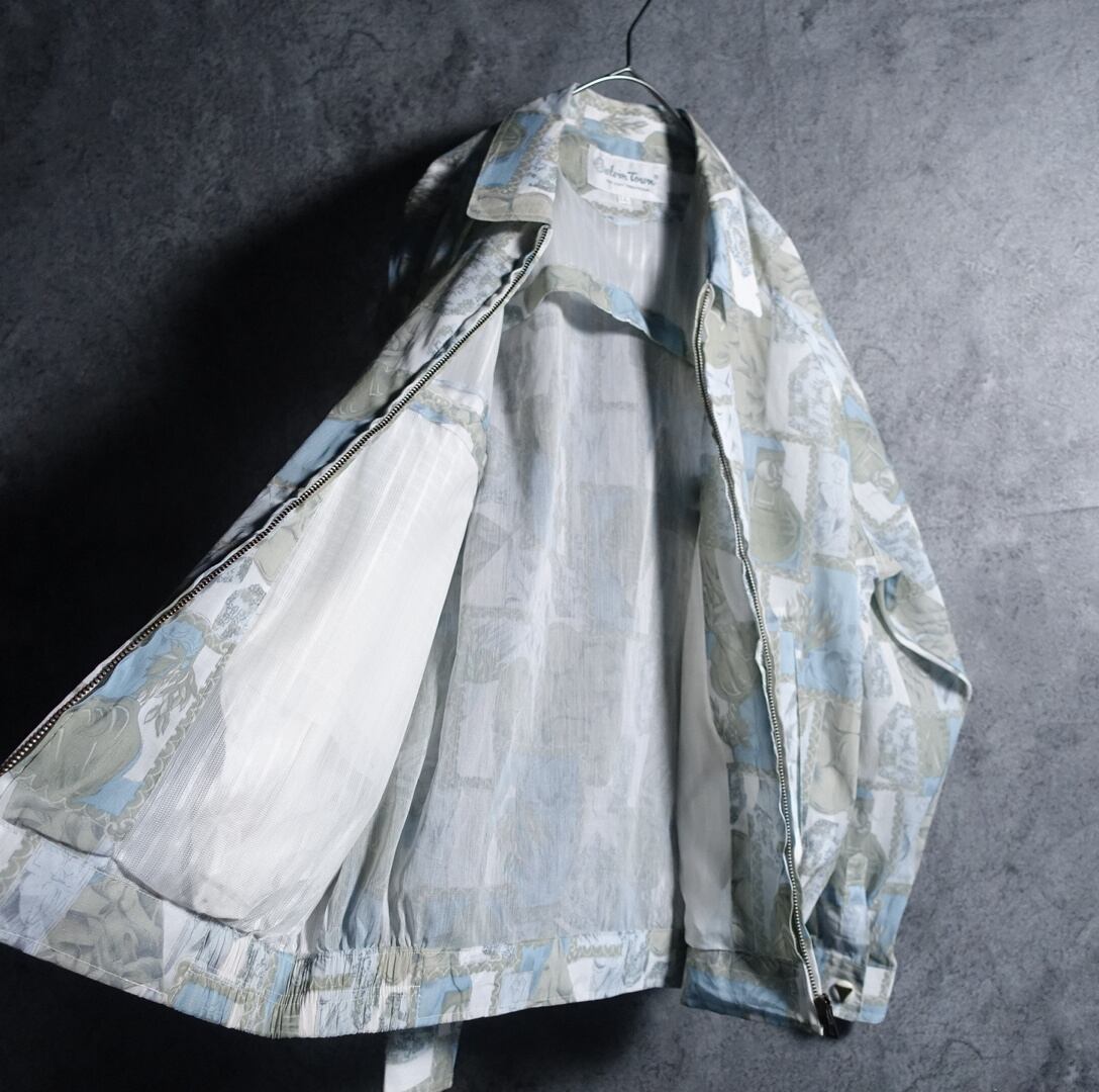 Multicolor Artistic Floral Design Sheer Zip Blouson