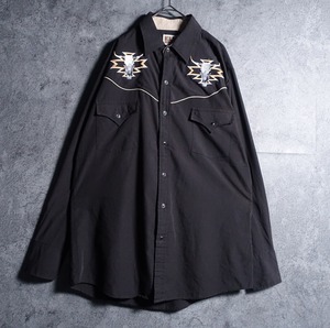 “ELY” Black Bison Skull Motif Design Western Shirt