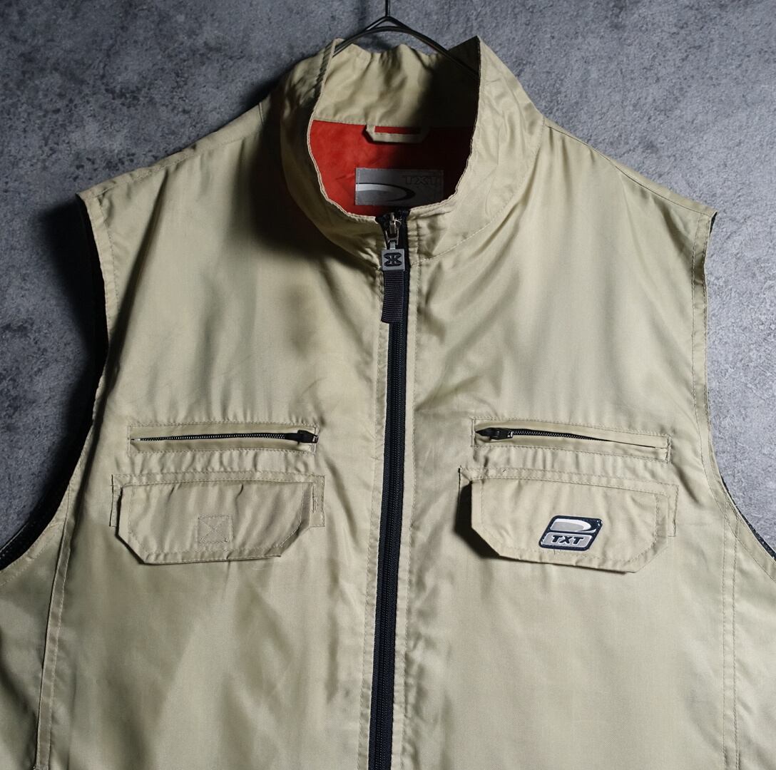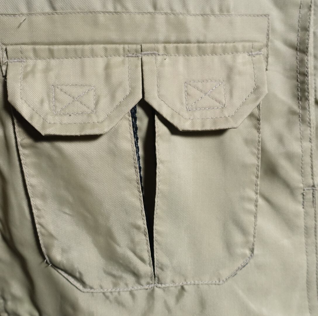 カーキのマルチポケットデザインナイロンベストが入荷です。
