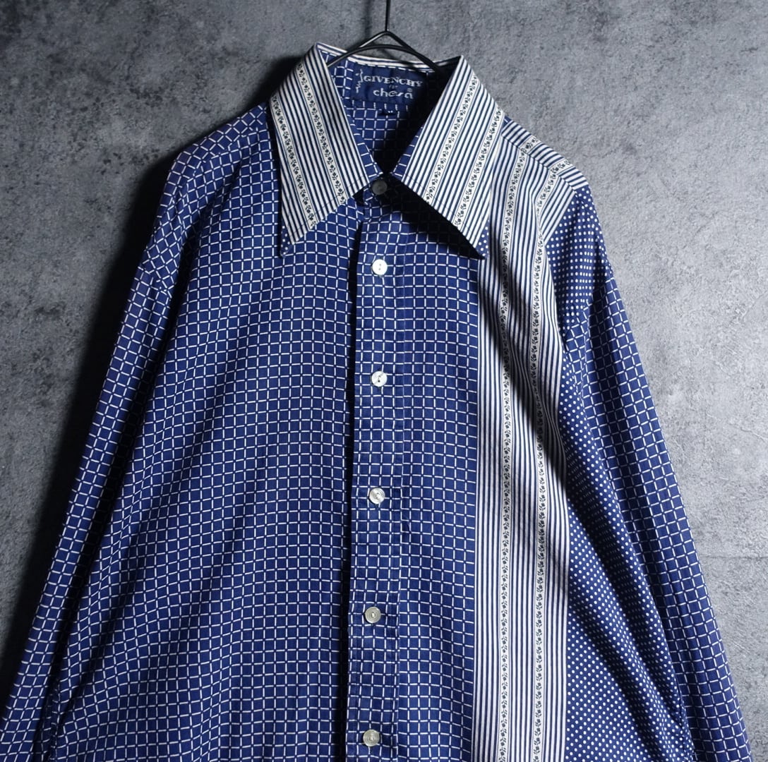 70s “GIVENCHY” Asymmetric design big collar shirt