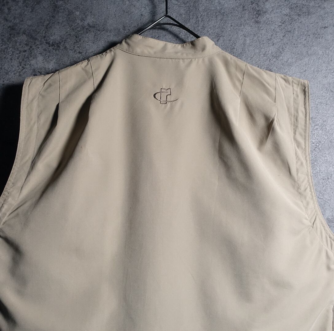 ベージュのロゴ刺繍デザインスムースナイロンベストが入荷です。