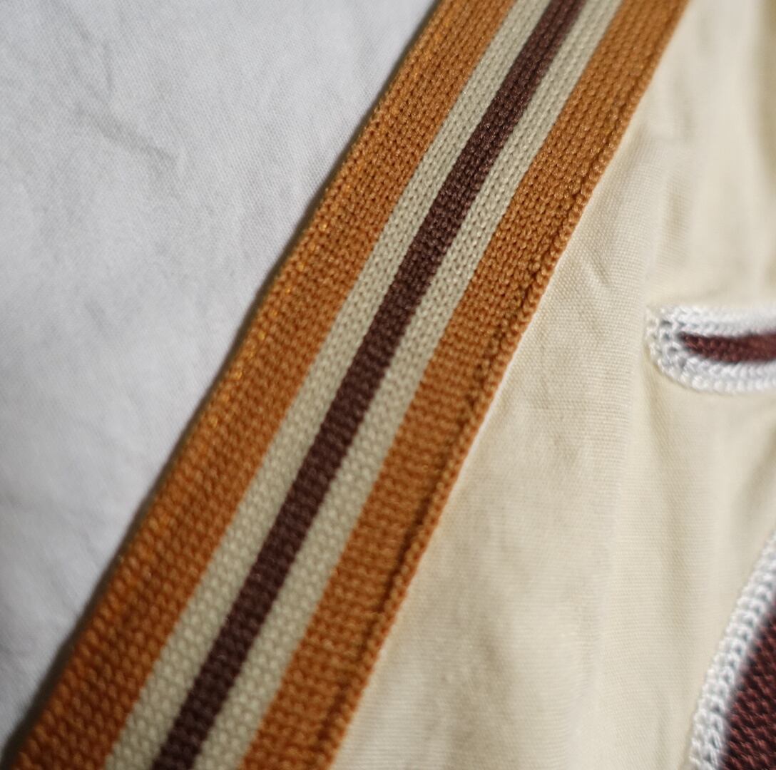 ポケットと襟から脇にかけてラインテープが施されており、良いアクセントととなっています。袖先の切替も◎