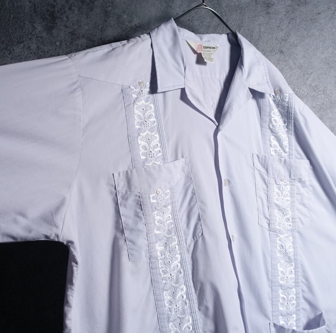パステルブルーの刺繍デザインキューバシャツが入荷です。