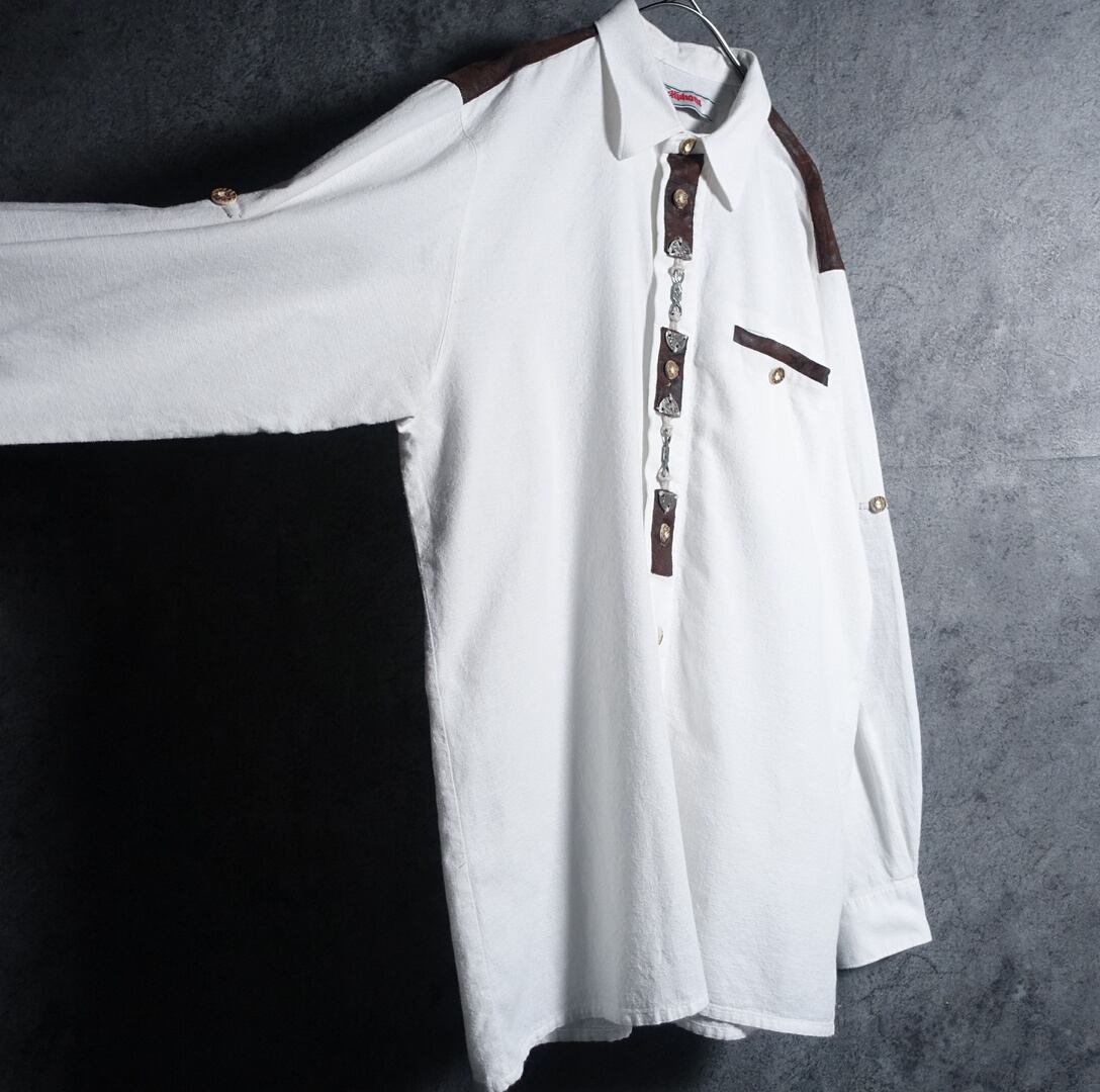 EURO White Metal & Leather Design 2way Tyrolean Shirt
