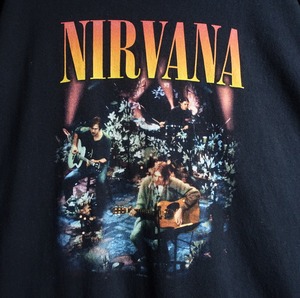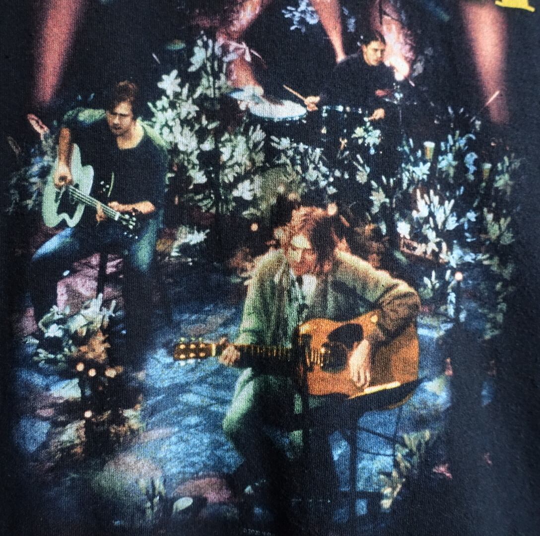 フロントにLIVEの風景とNIRVANAのロゴがあしらわれた比較的珍しいグットプリントデザイン。
