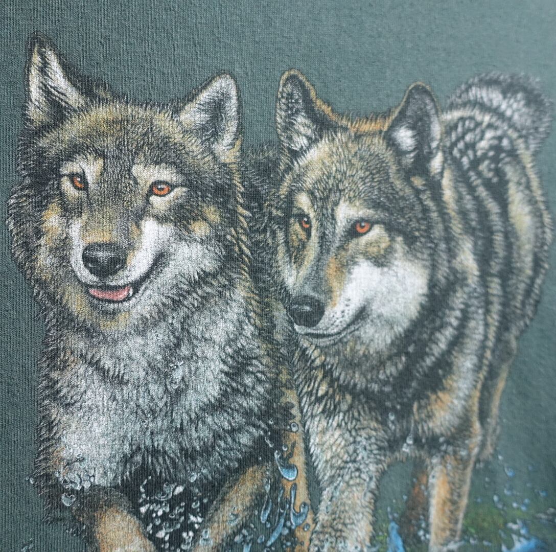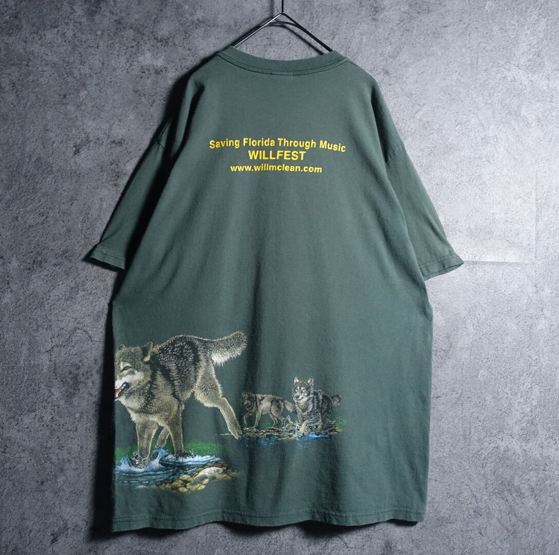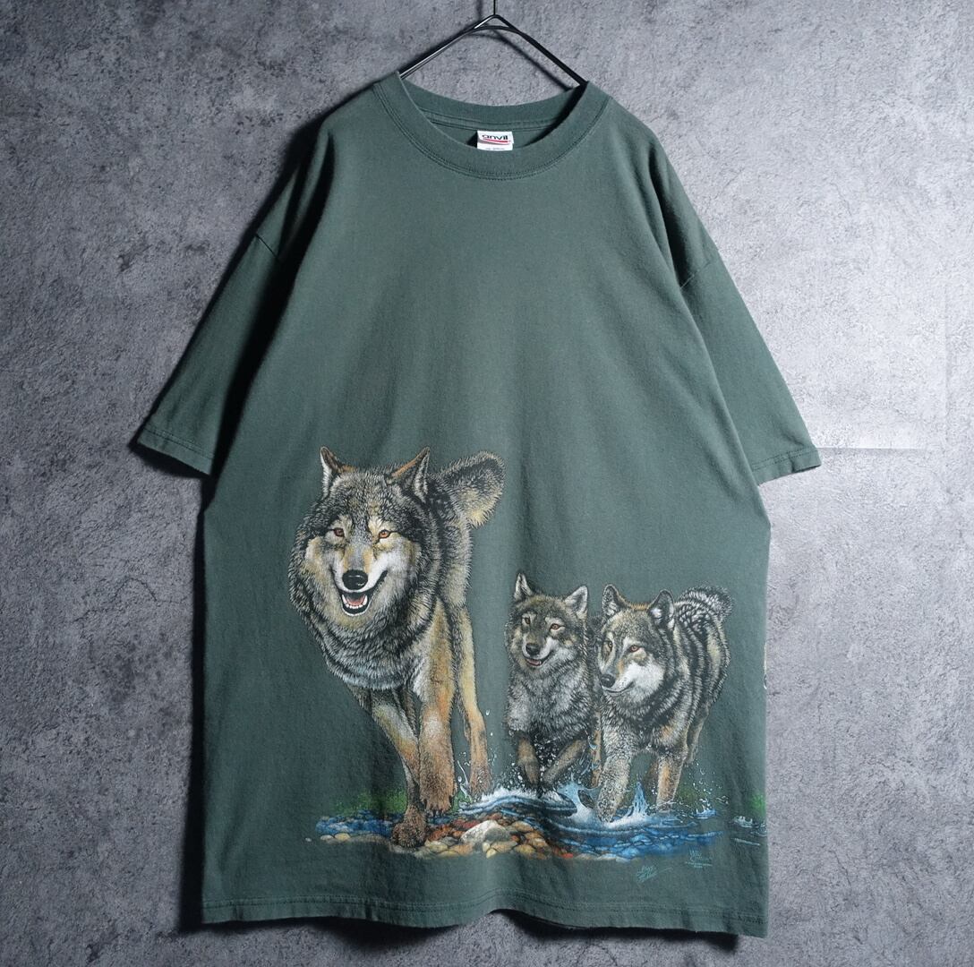 00sのanvilよりスペシャルなグリーンのウルフ両面プリントTシャツが入荷です。