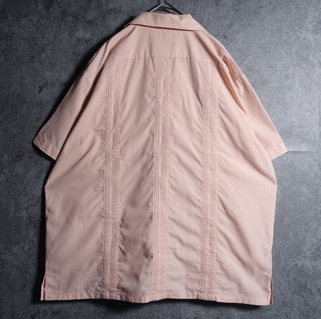 “GUAYABERA” Baby Pink Embroidered Design Cuban Shirt
