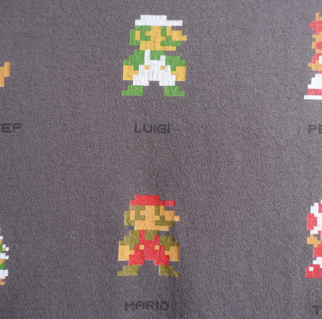 フロントにマリオやクッパ、キノピオなどをピクセル絵であしらったレトロなグットデザイン。