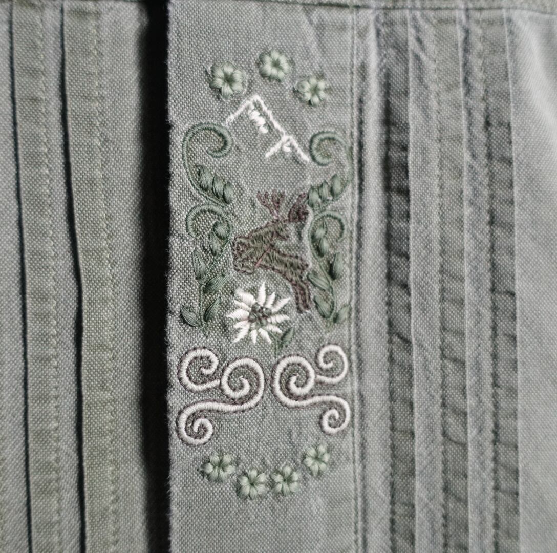 "LANDHAUS" EURO Olive Flower Reindeer Design Tyrolean Shirt