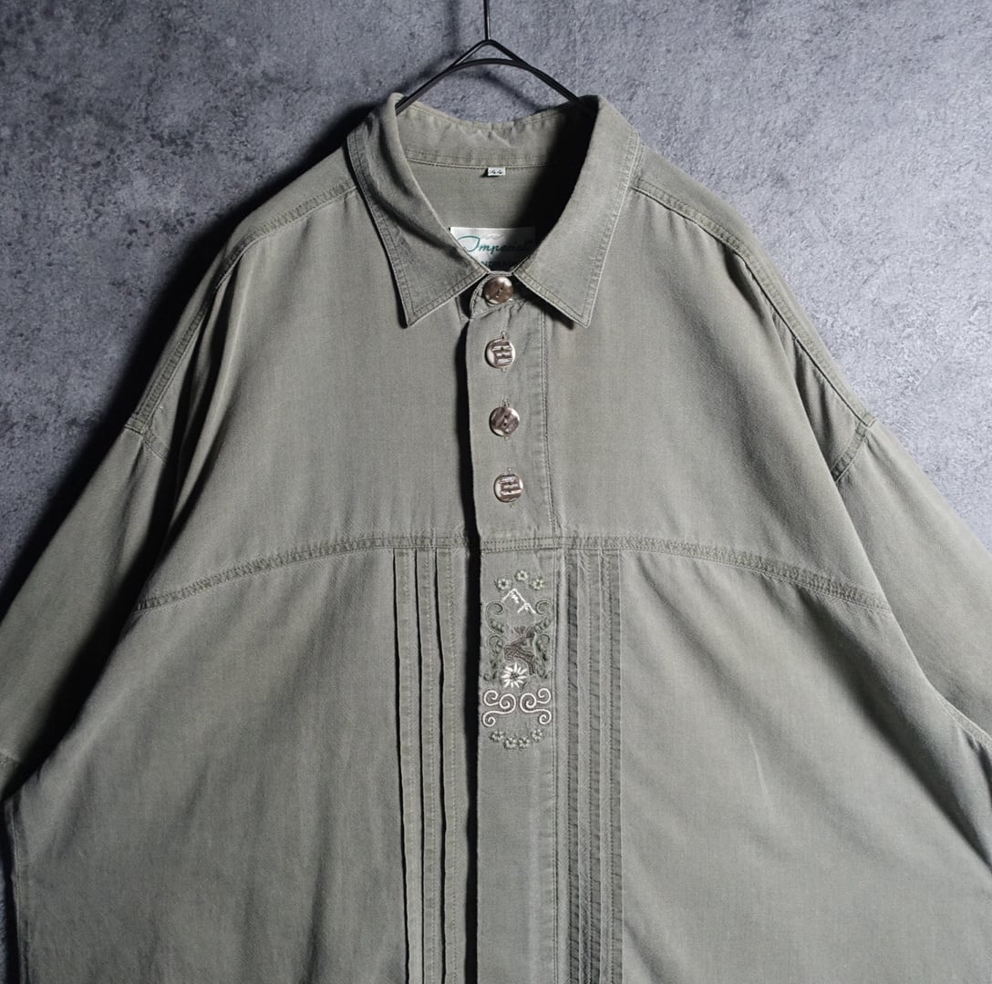 チロリアンシャツでは比較的色味の良いオリーブカラリング。