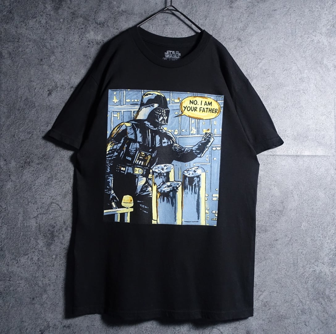 フロントにSTAR WARSでは代表的なアンチヒーローのダースベイダーがビールを呑み「違う。私はあなたのお父さんだ」と言っている様子をあしらったユーモアのあるグットプリント。