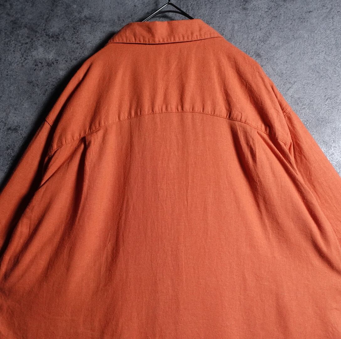 “haggar” orange & white bicolor line shirt