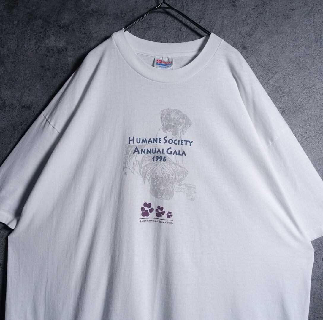 90s “Hanes” White Dog Motif Animal Print T-shirt