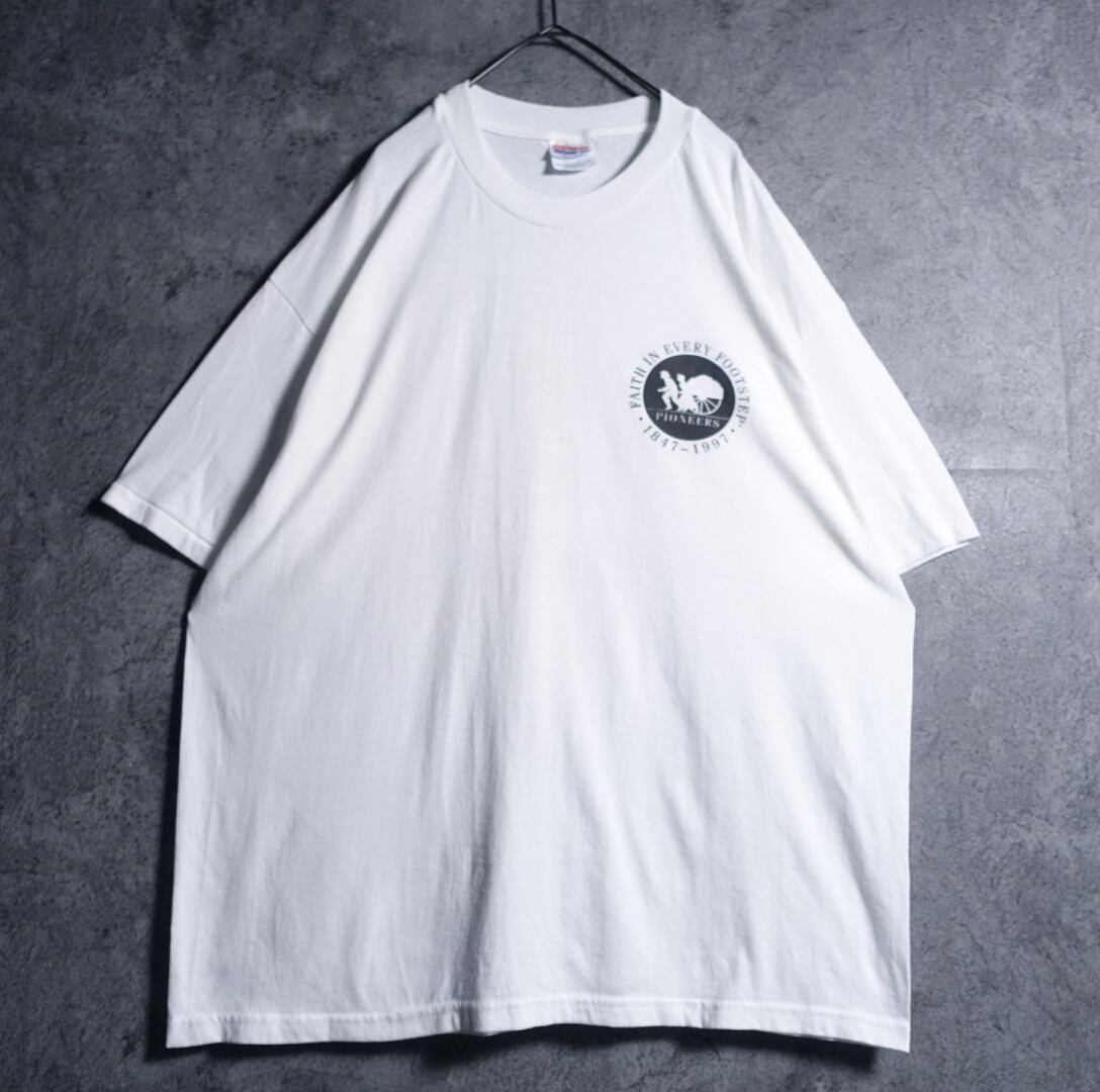 90年代アメリカ製のHanesよりホワイトの両面プリントTシャツが入荷です。