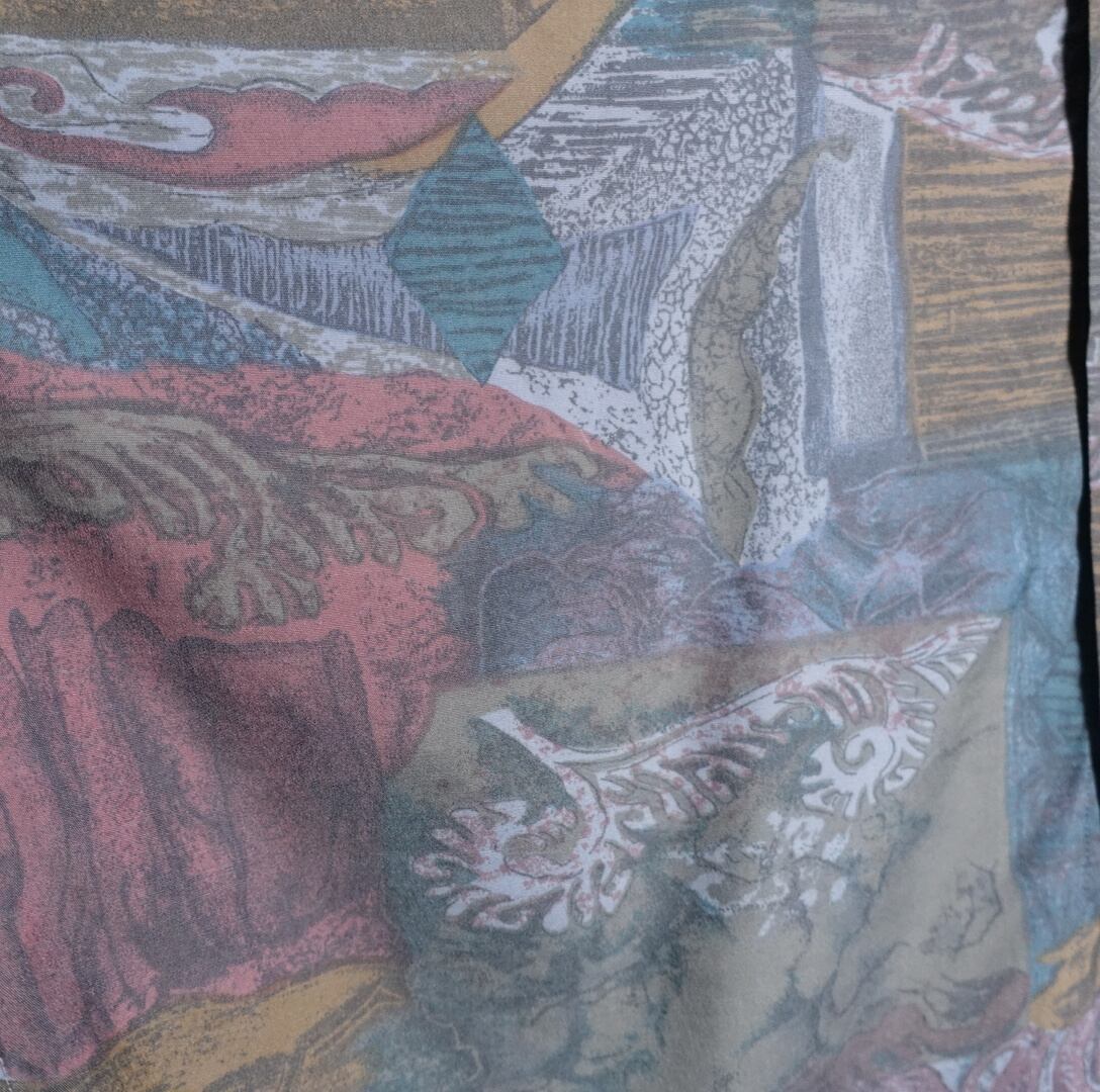 抽象的な柄を全面にあしらったアーティスティックなデザイン。
