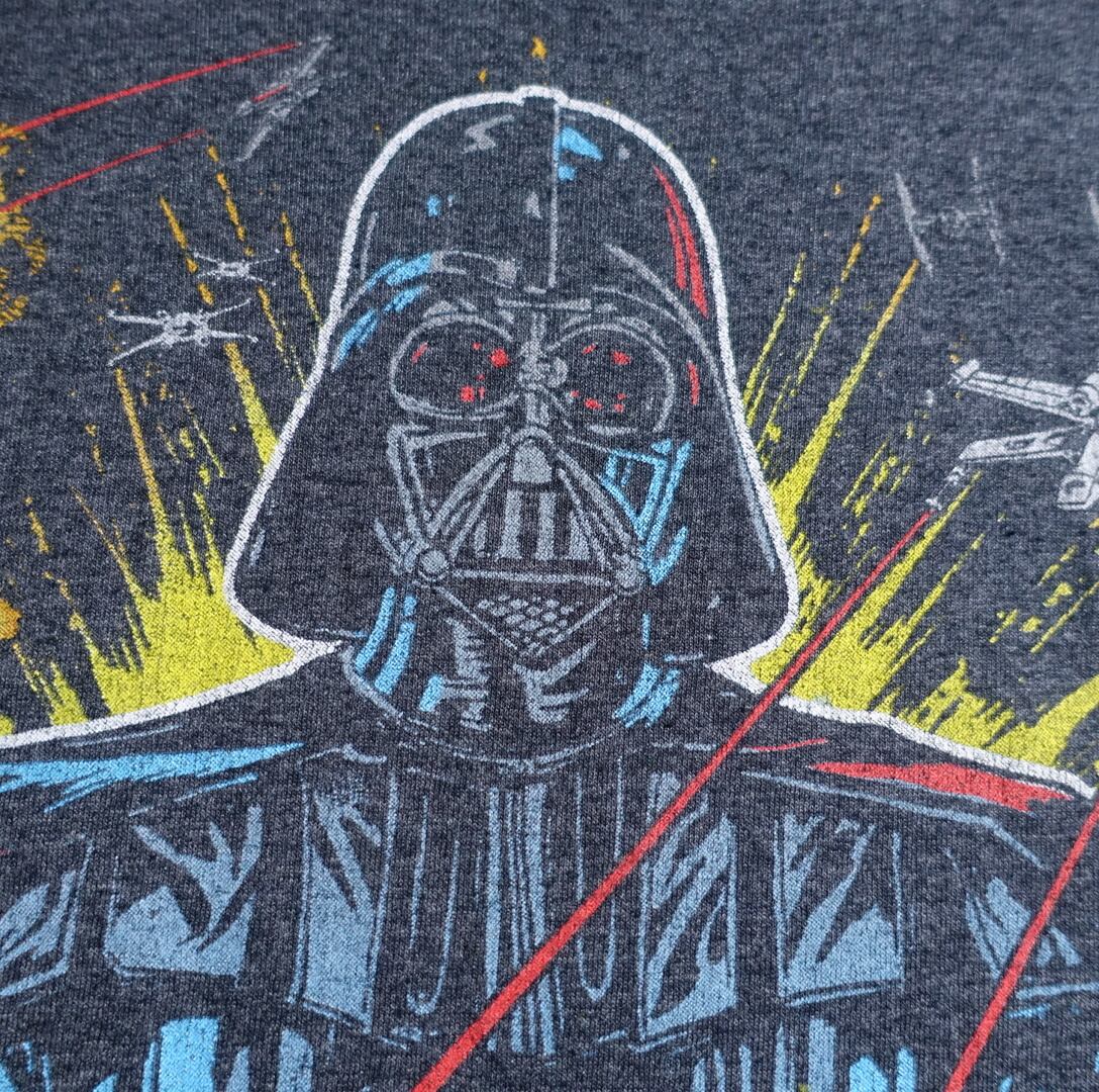 フロントにダースベイダーとグラデーションがかったSTAR WARSを大きくあしらったグットプリントデザイン。