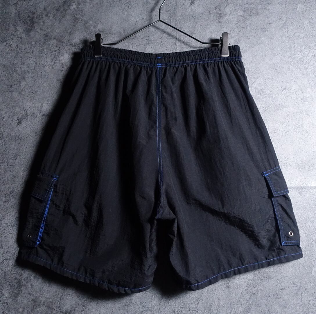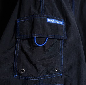 “BIG DOGS” Black Logo & Stitchwork Design Nylon Cargo Half Pants