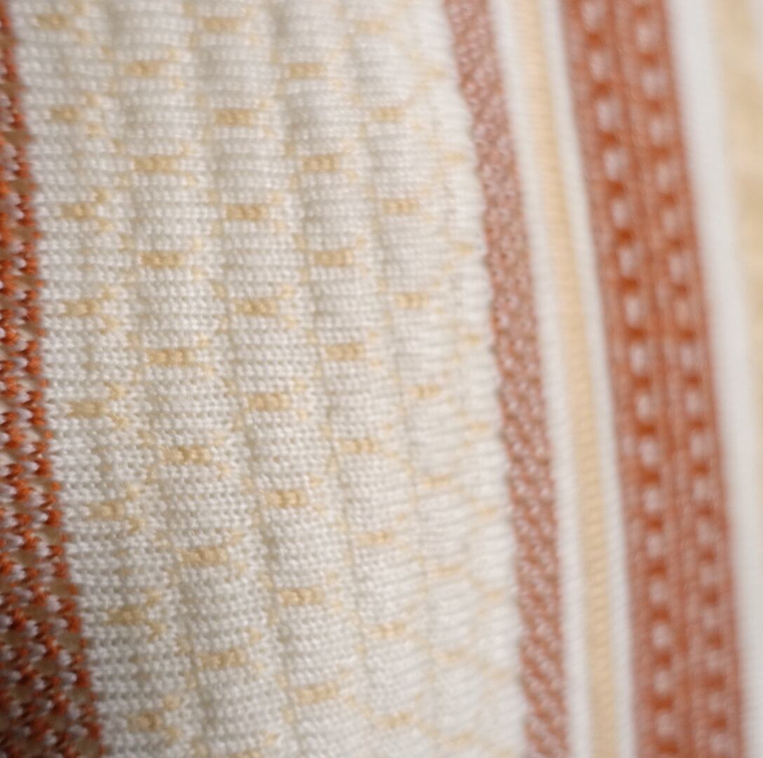 フロントにベージュ、ホワイト、ブラウンのニット生地で切り替えたデザイン。