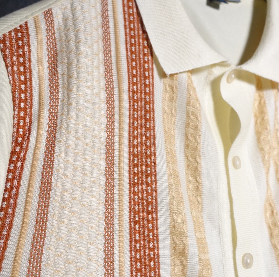 スペシャルなベージュのニット切替デザインシャツが入荷です。