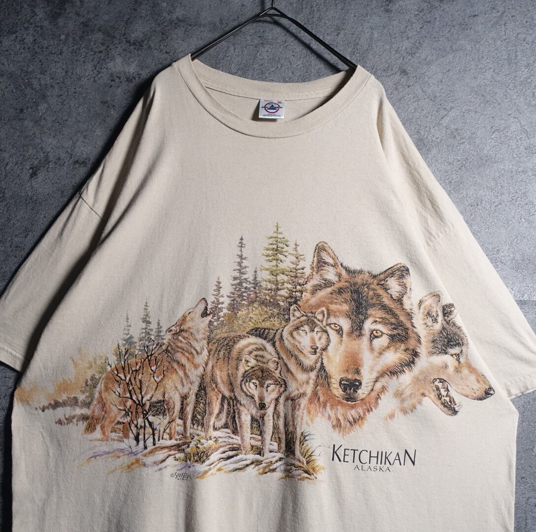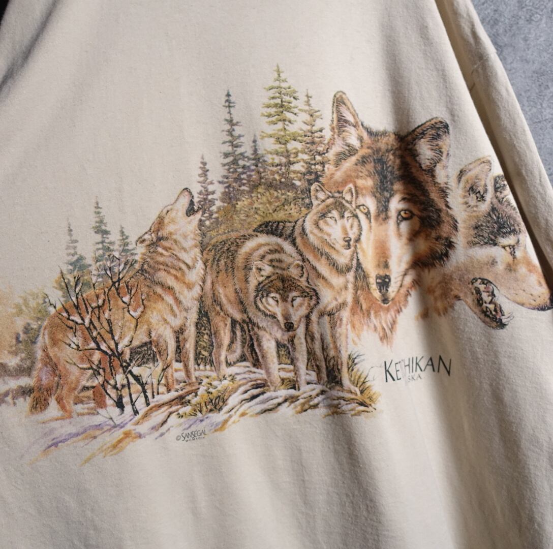 90s “DELTA” Beige Wolf Print T-Shirt