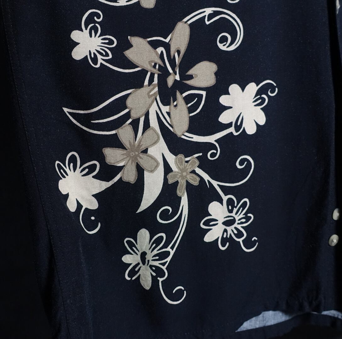"Pierre cardin" Black Flower Motif Design Rayon Shirt