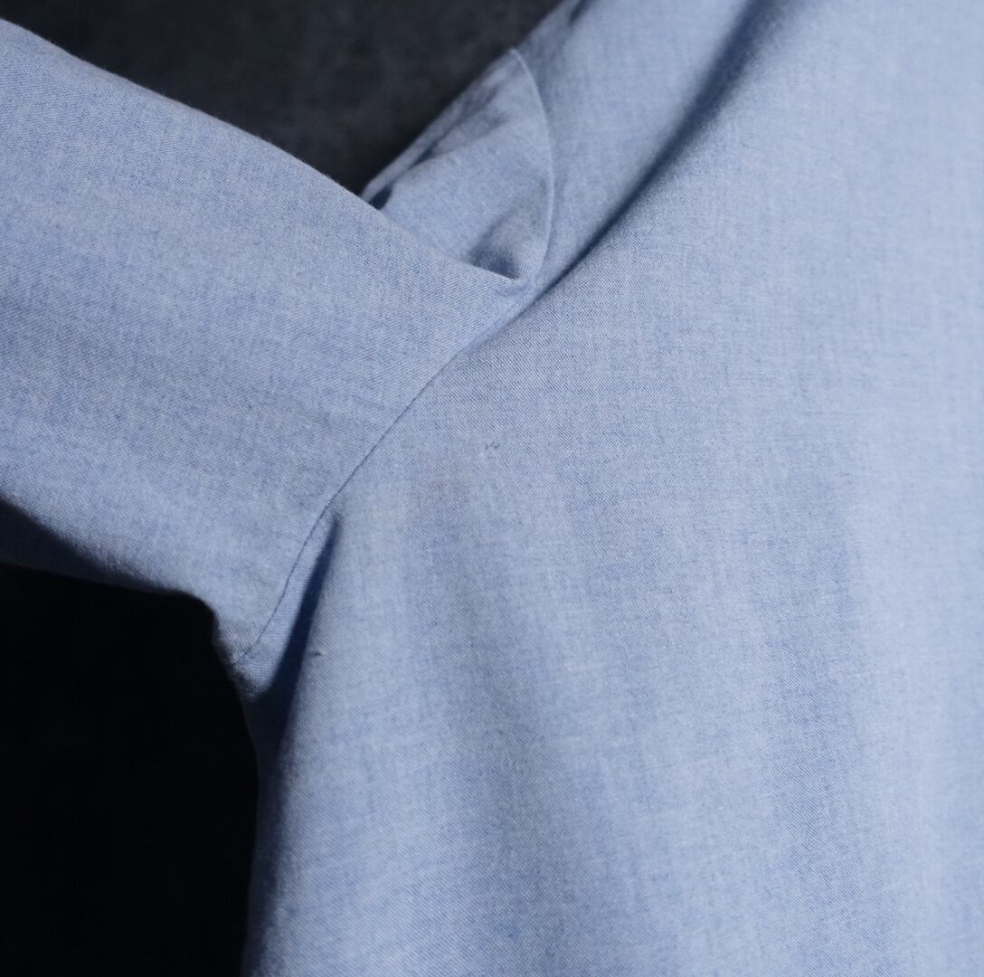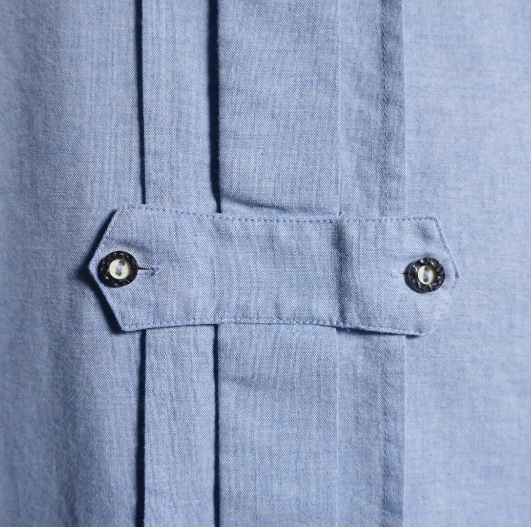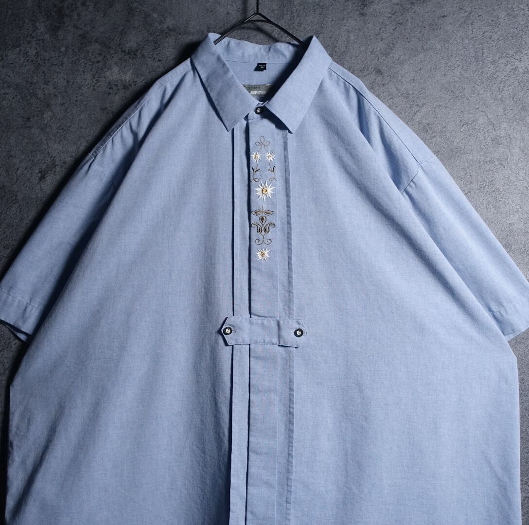 夏らしさのあるチロリアンシャツでは珍しいライトブルーカラーベース。