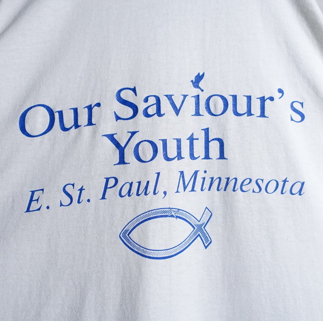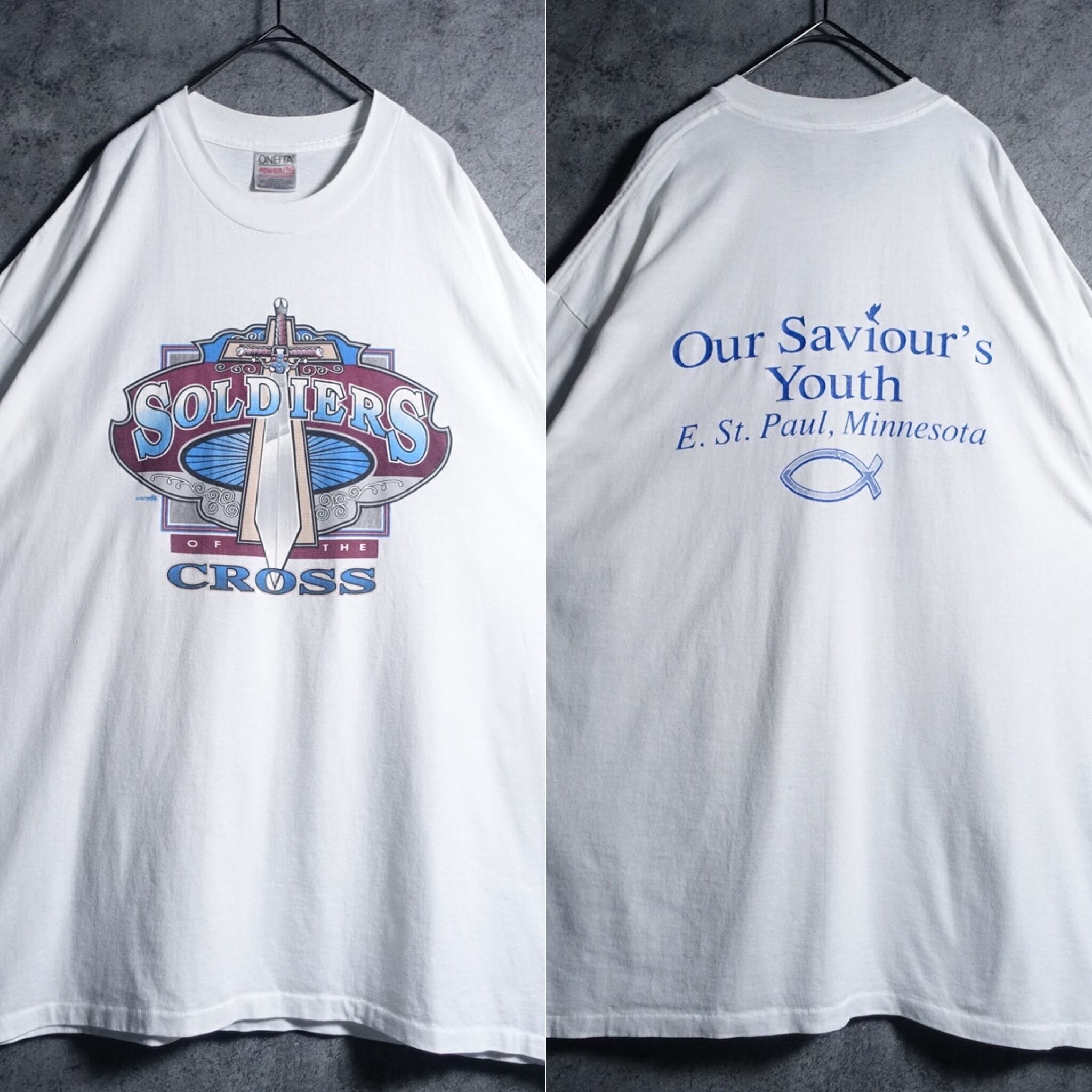 90s “ONEITA” White Sword Double Sided Print T-shirt
