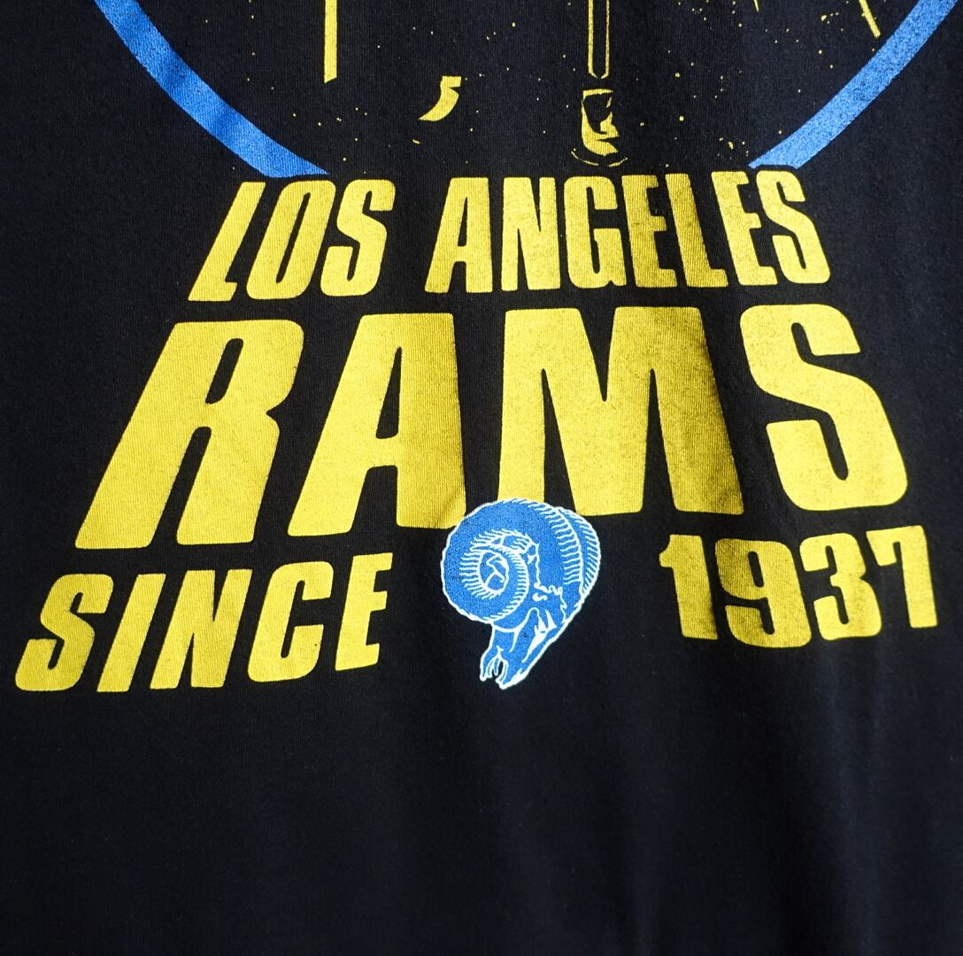 さらに下にはNFLチームのロサンゼルス ラムズのアルファベットとロゴをあしらった豪華なコラボプリントデザイン。